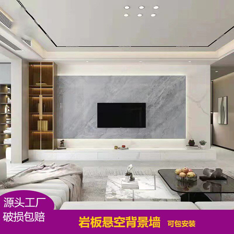 速发岩板悬墙电微背景空瓷砖大理石电视墙简约岩板视晶石客厅沙发