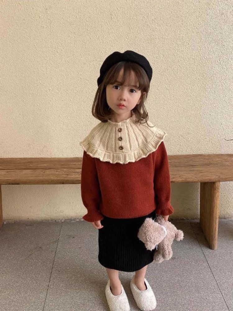 女童加绒针织衫秋冬装新款儿童套头毛衣中小童韩版圆领加厚打底衫