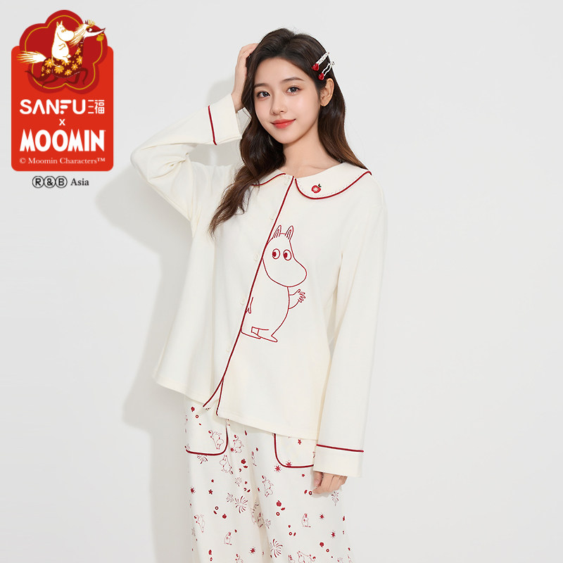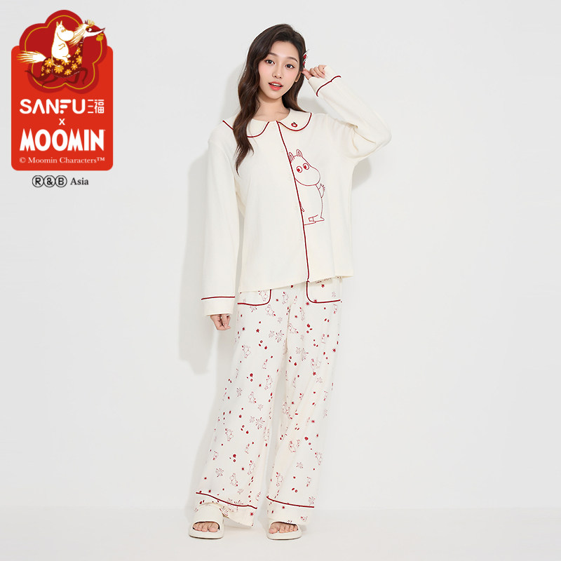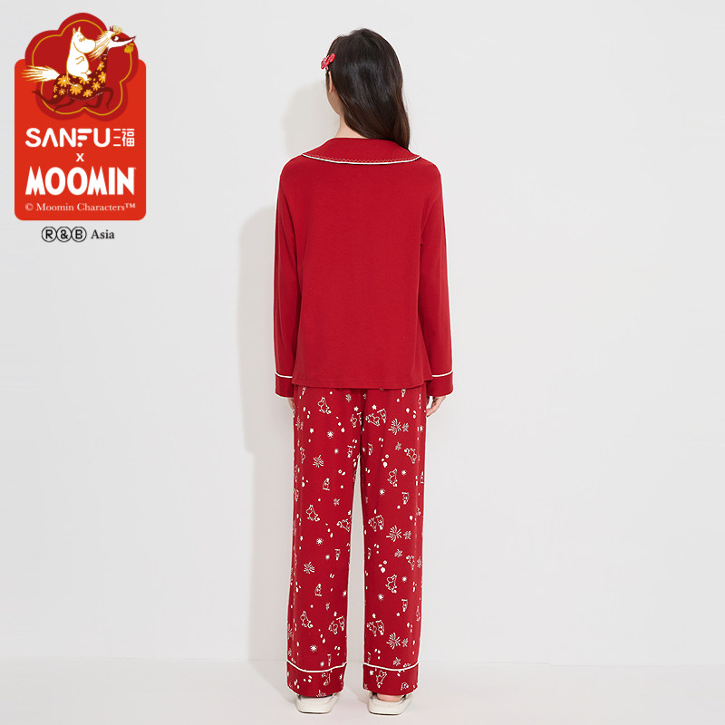 三福新年系列【姆明联名】春娃娃领本命年红色睡衣女家居服515088