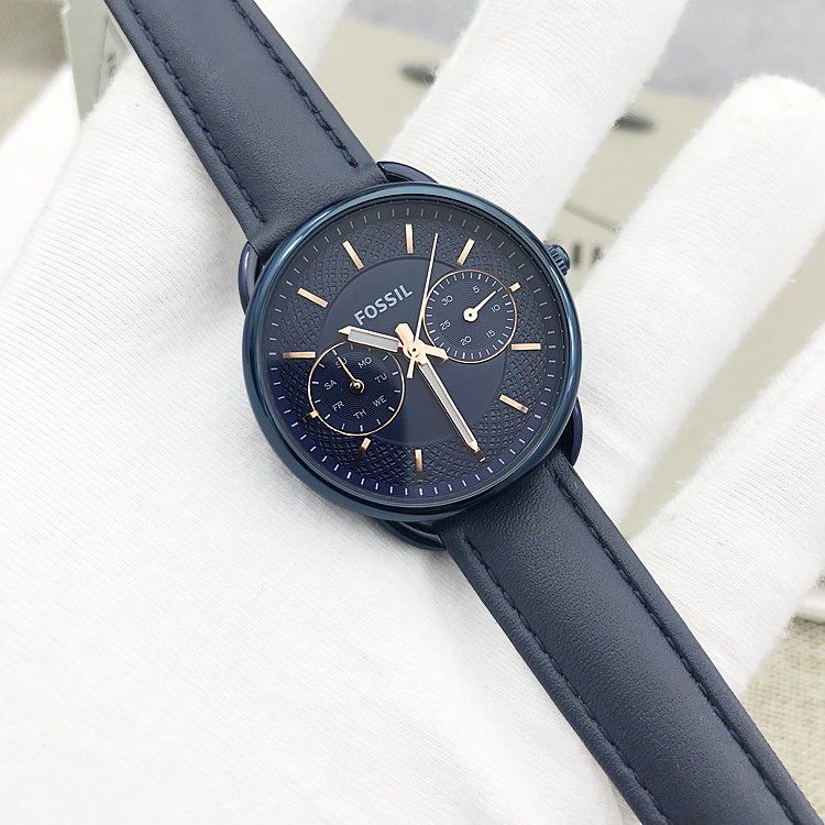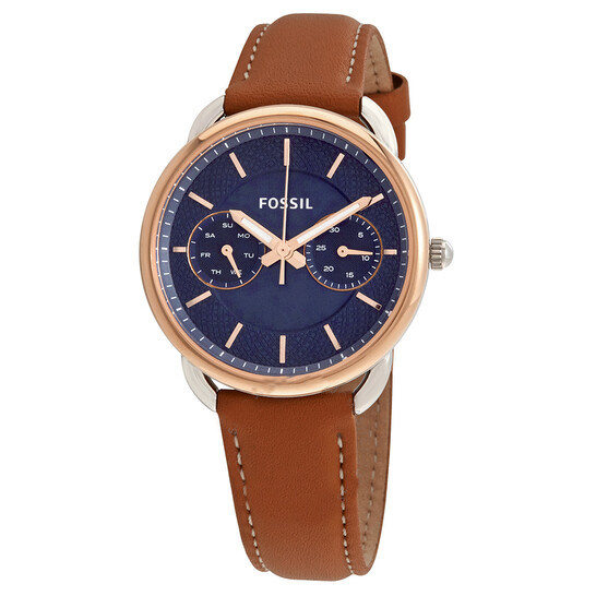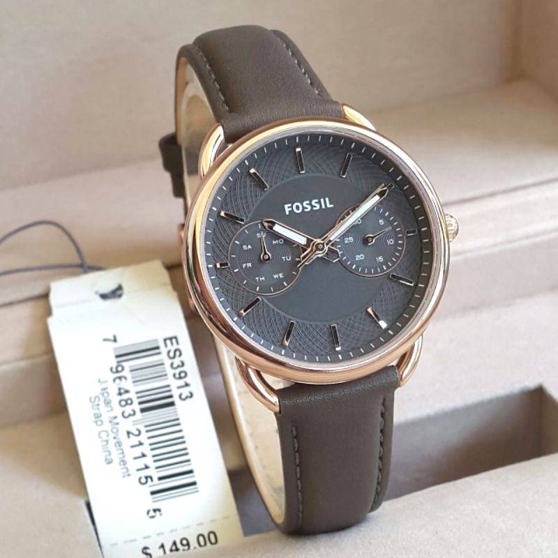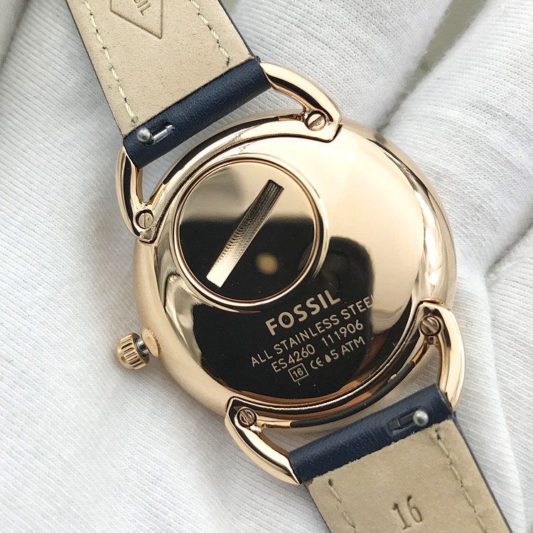 现货FOSSIL手表真皮休闲时尚星期日历玫瑰金石英防水女表ES4260