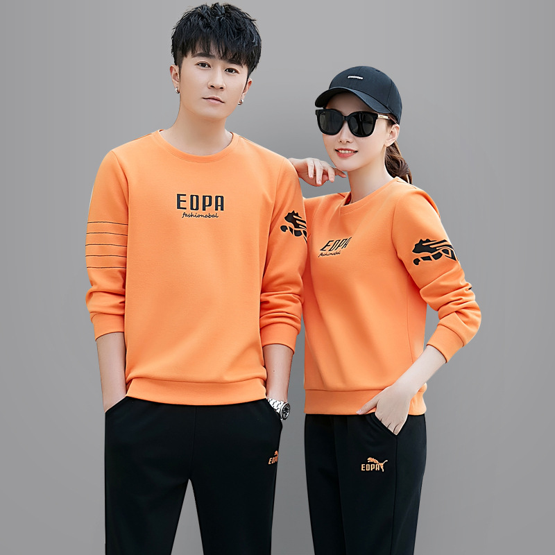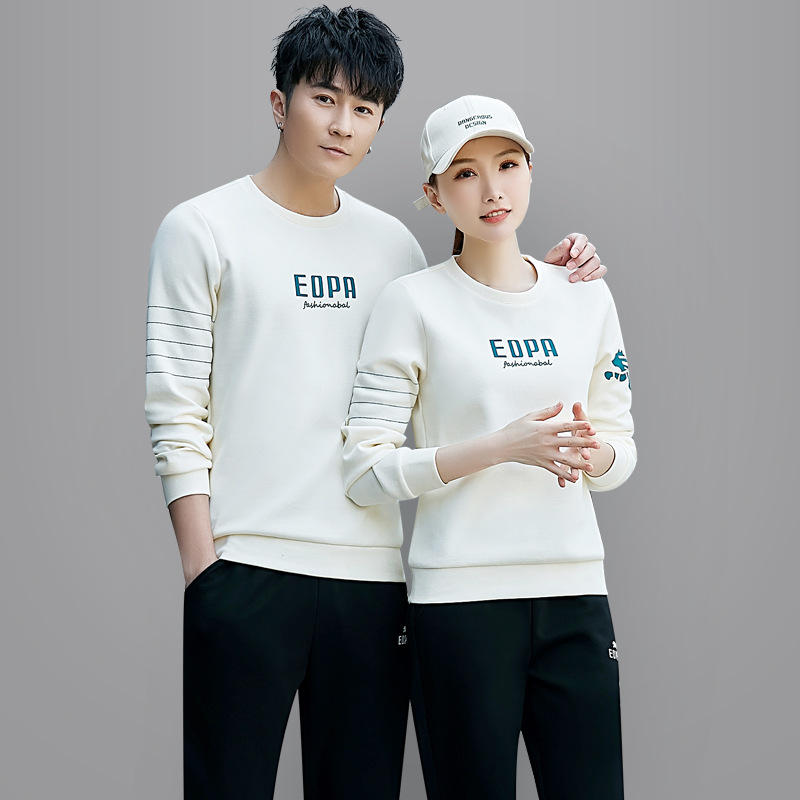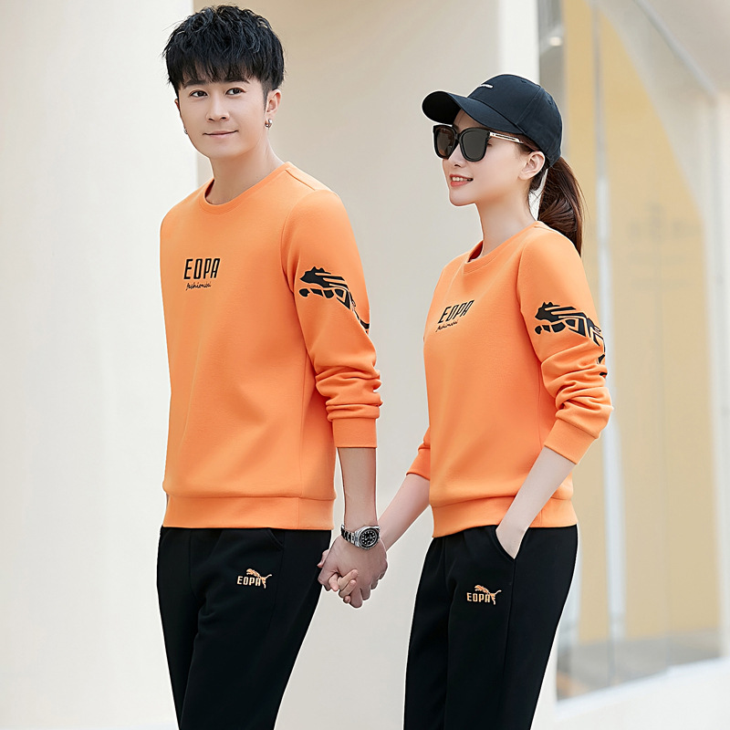 2022春季情侣运动套装男士圆领长袖运动服套装男春秋女休闲卫衣棉