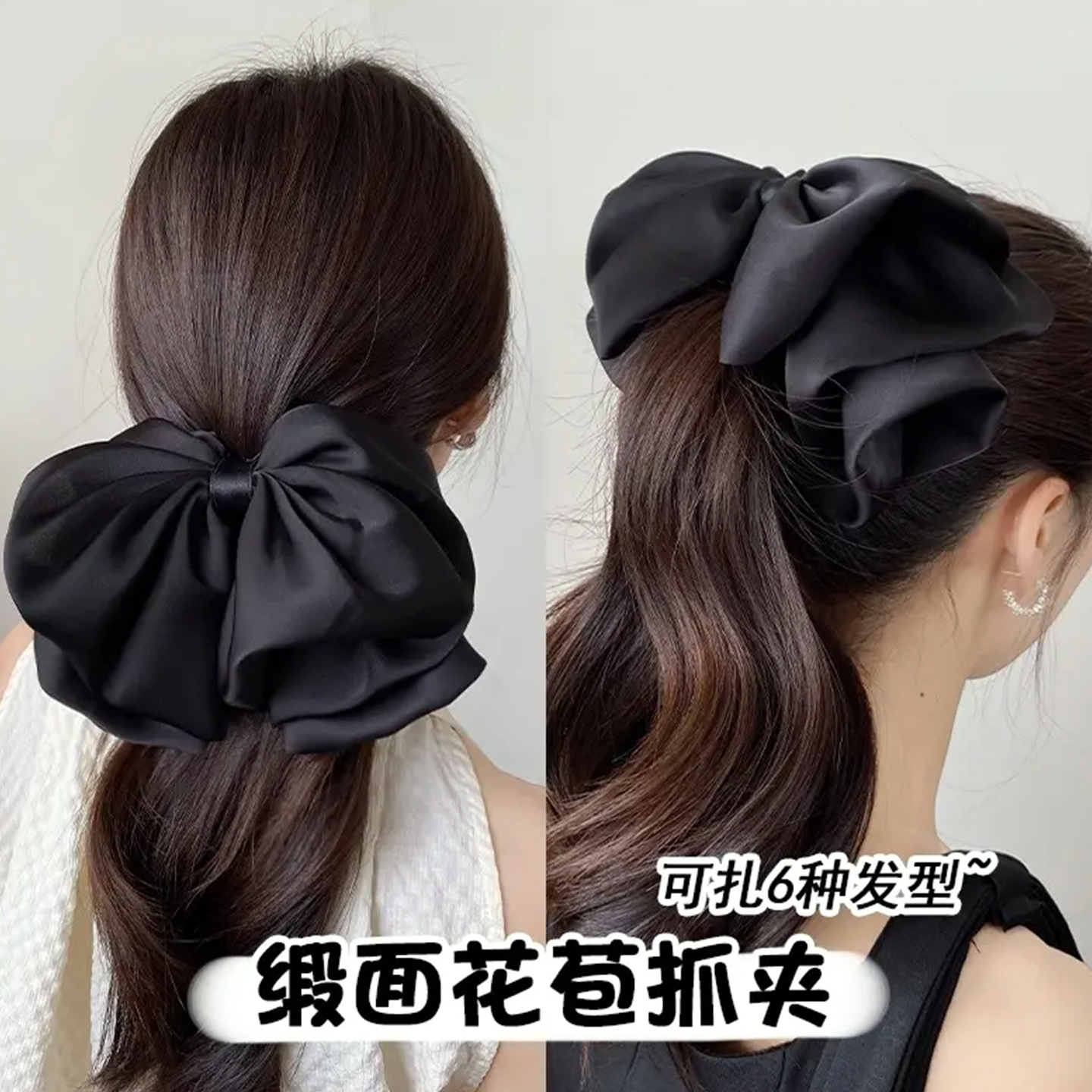 超大蝴蝶结缎面花苞抓夹女2025新款后脑勺蓬松发夹气质马尾夹发卡