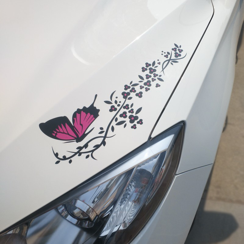 蝴蝶汽车贴纸引擎盖灯眉装饰车身划痕遮挡贴画防水