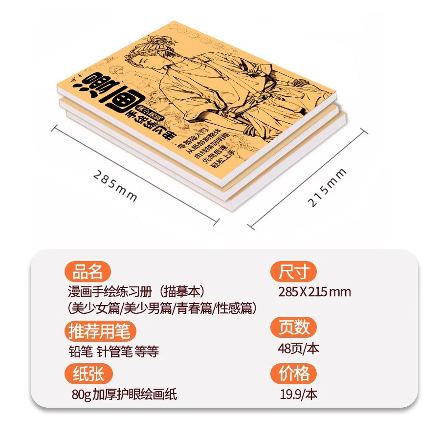 漫画手绘描摹本动漫人物临摹练习册新手入门自学零基础美少女线稿