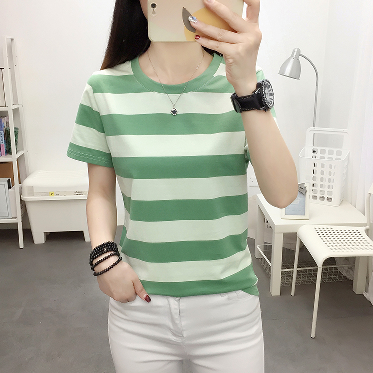 纯棉短袖t恤女夏装2025年新款显瘦大码上衣宽松中年妈妈条纹体恤