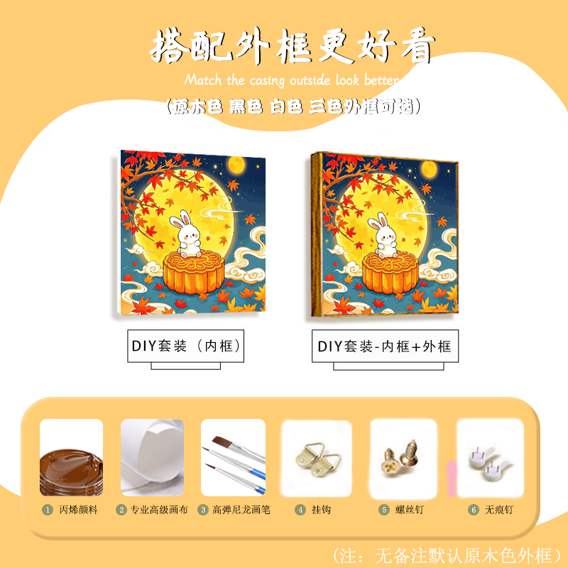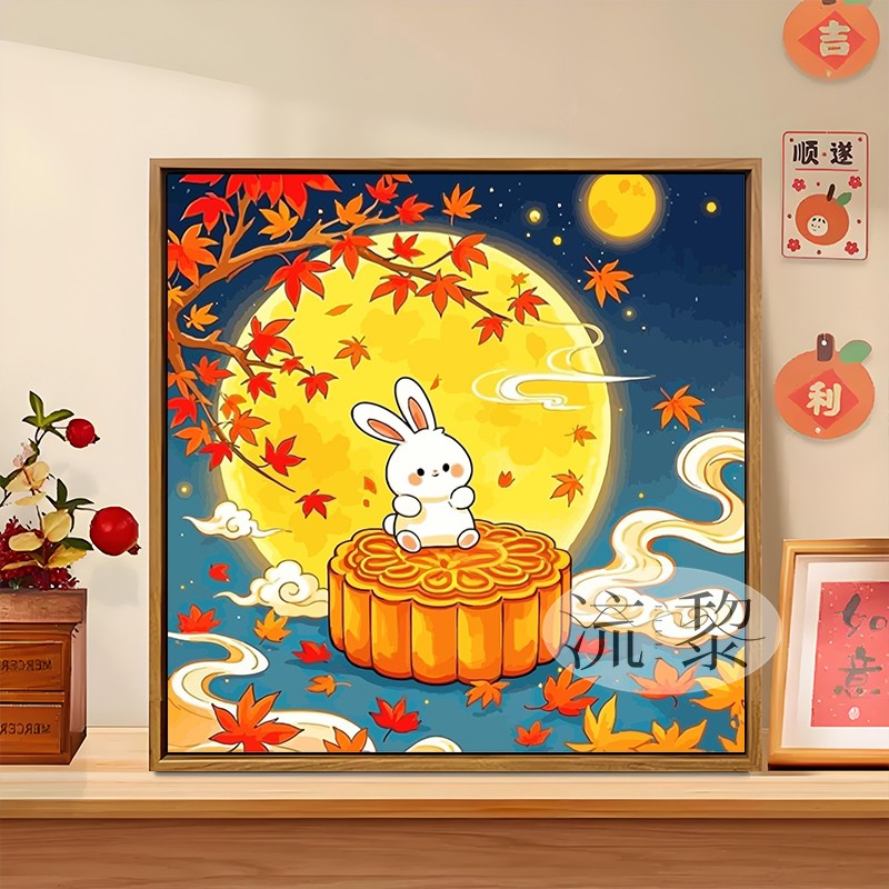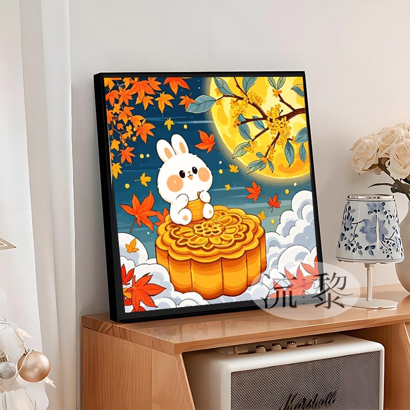 中国风中秋节DIY数字油画幼儿园活动手工绘填充涂色桂下玉兔装饰