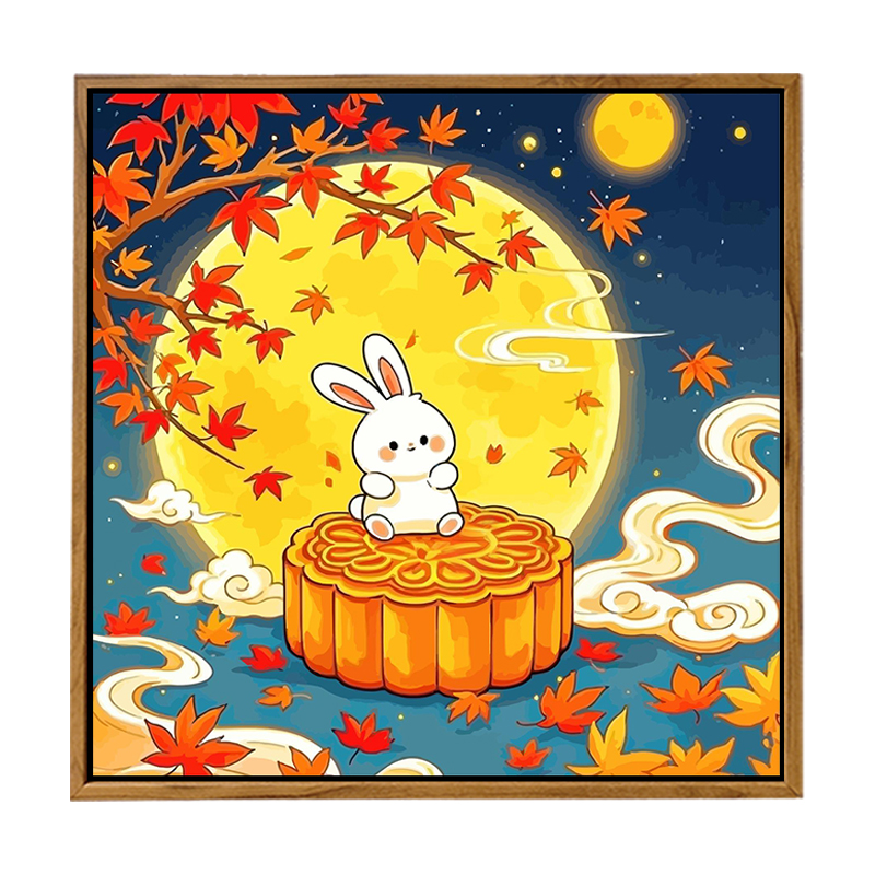 国风中秋节DIY数字油画桂下玉兔
