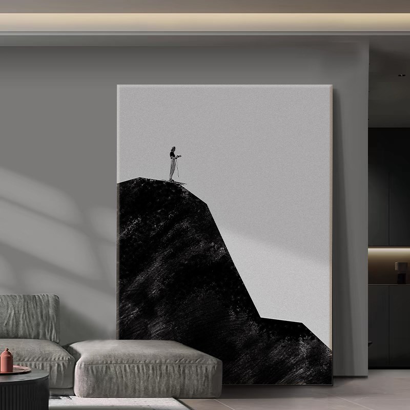 意式极简抽象人物手绘油画黑白灰客厅装饰画别墅挑高玄关过道挂画
