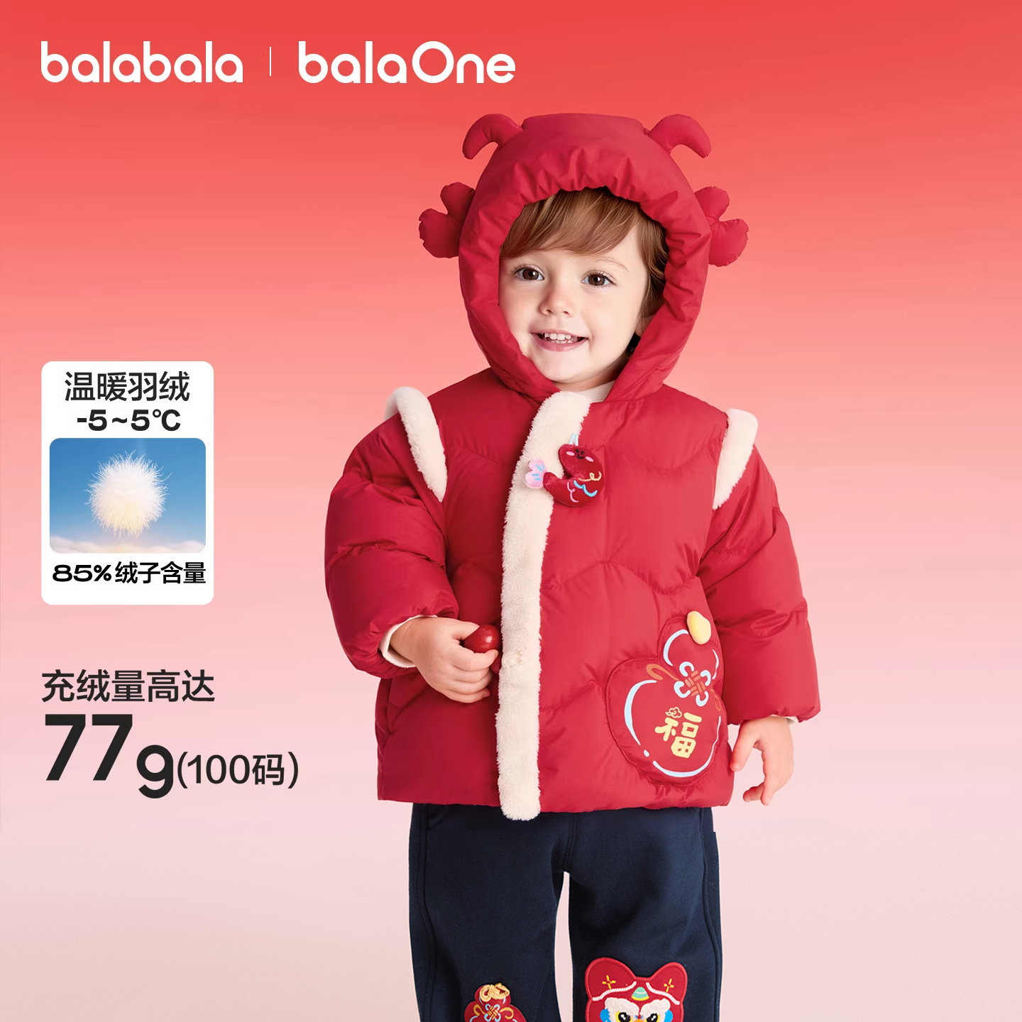 巴拉巴拉儿童羽绒服春节拜年服