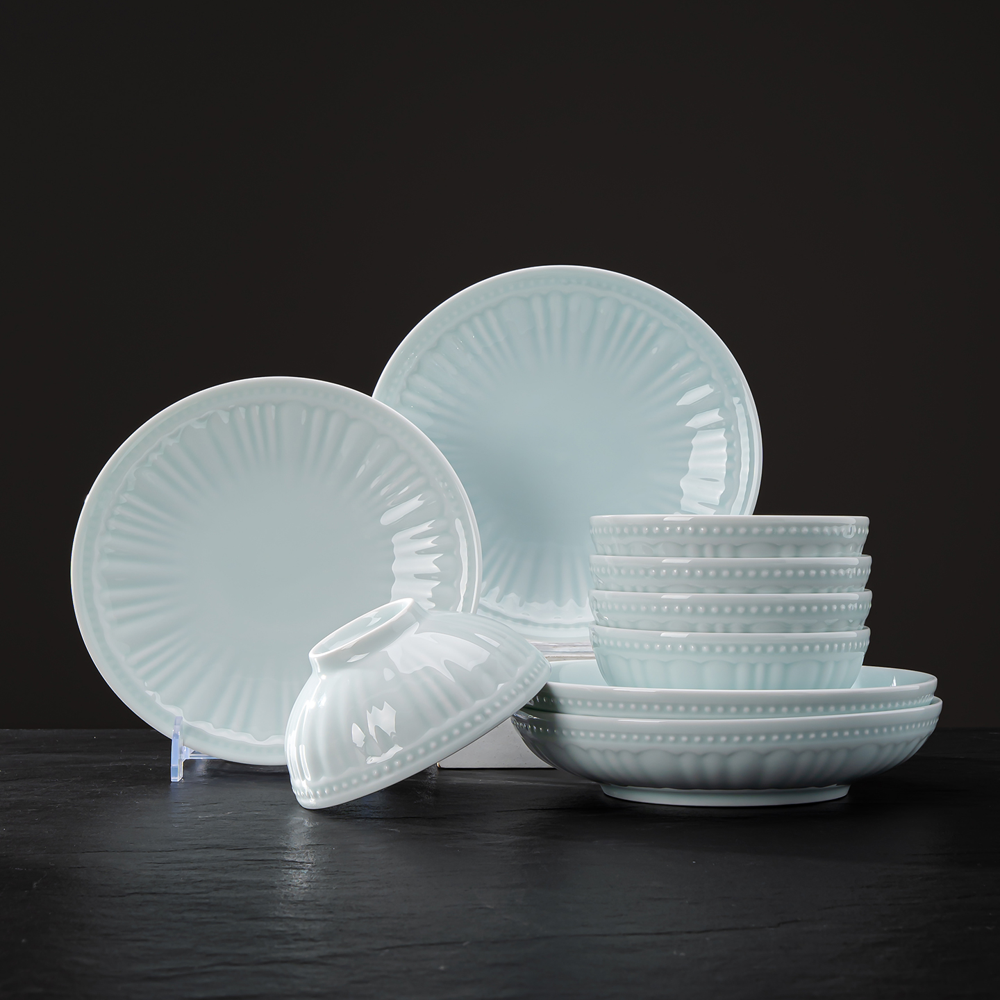 景德镇釉下彩2025碗碟套装家用新中式高温瓷青瓷餐具套装乔迁送礼