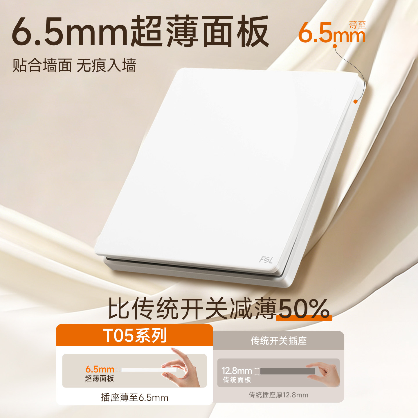 佛山照明超薄开关插座16a面板86型家用墙壁暗装一开五孔插座T05白