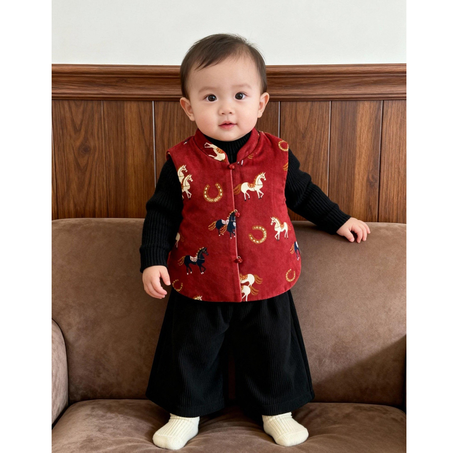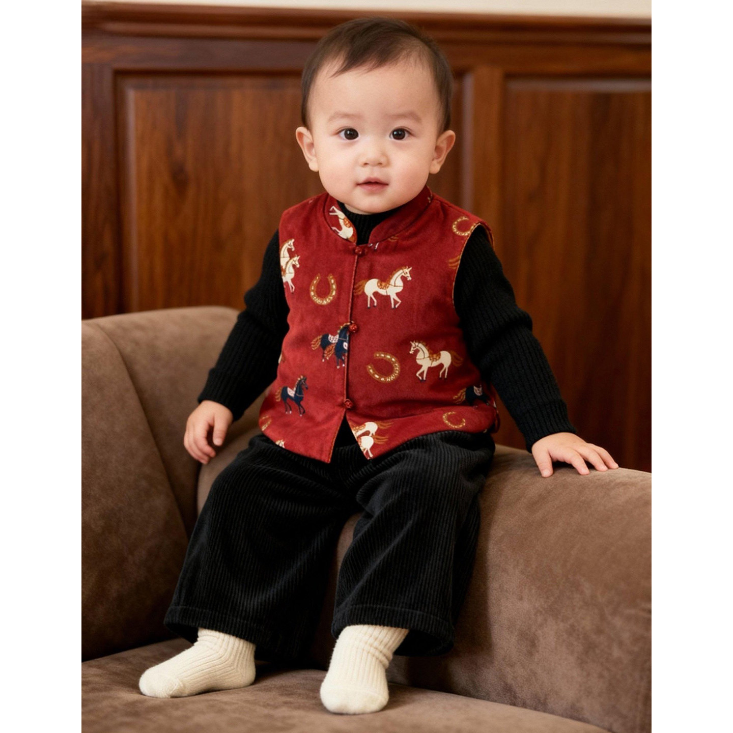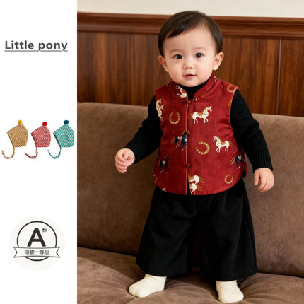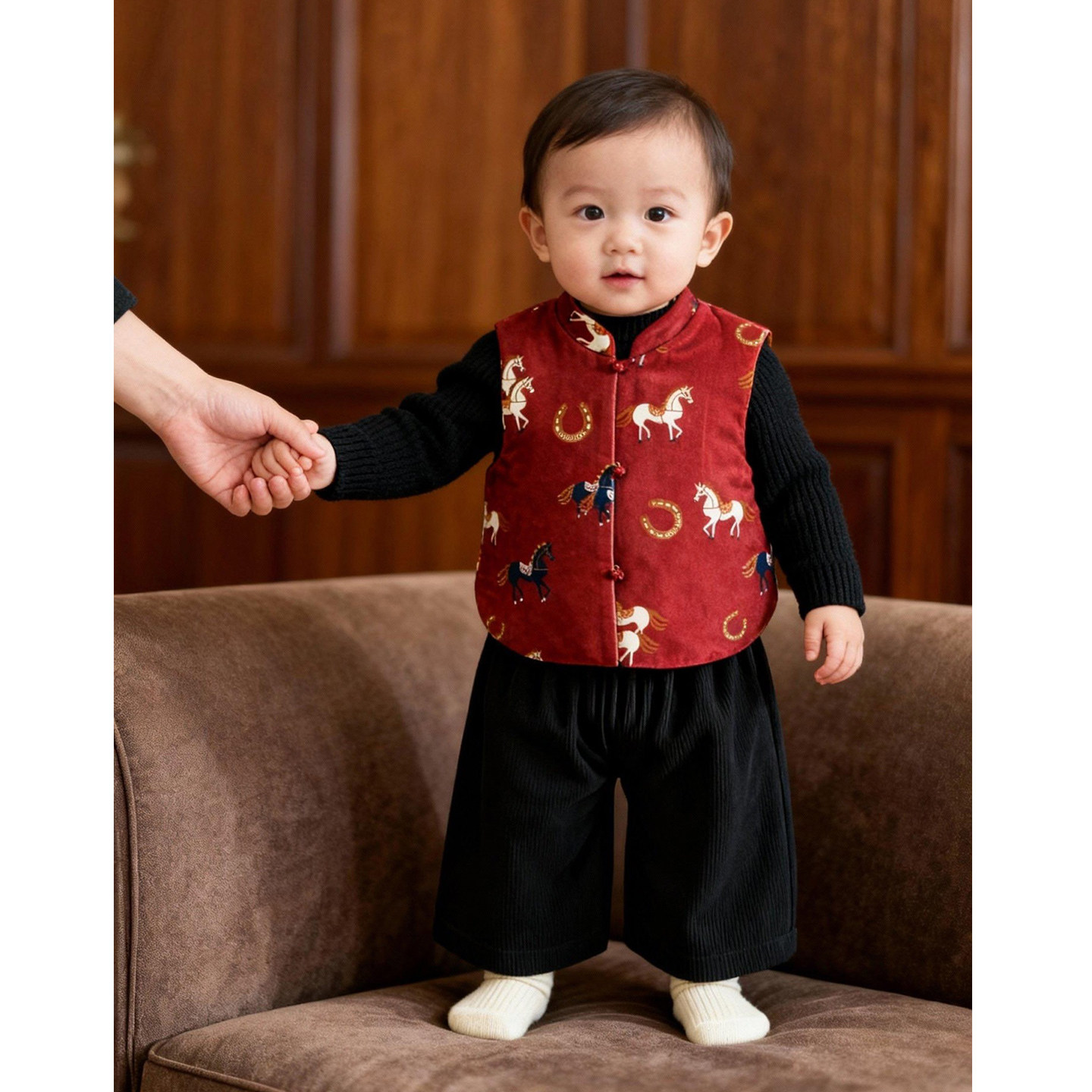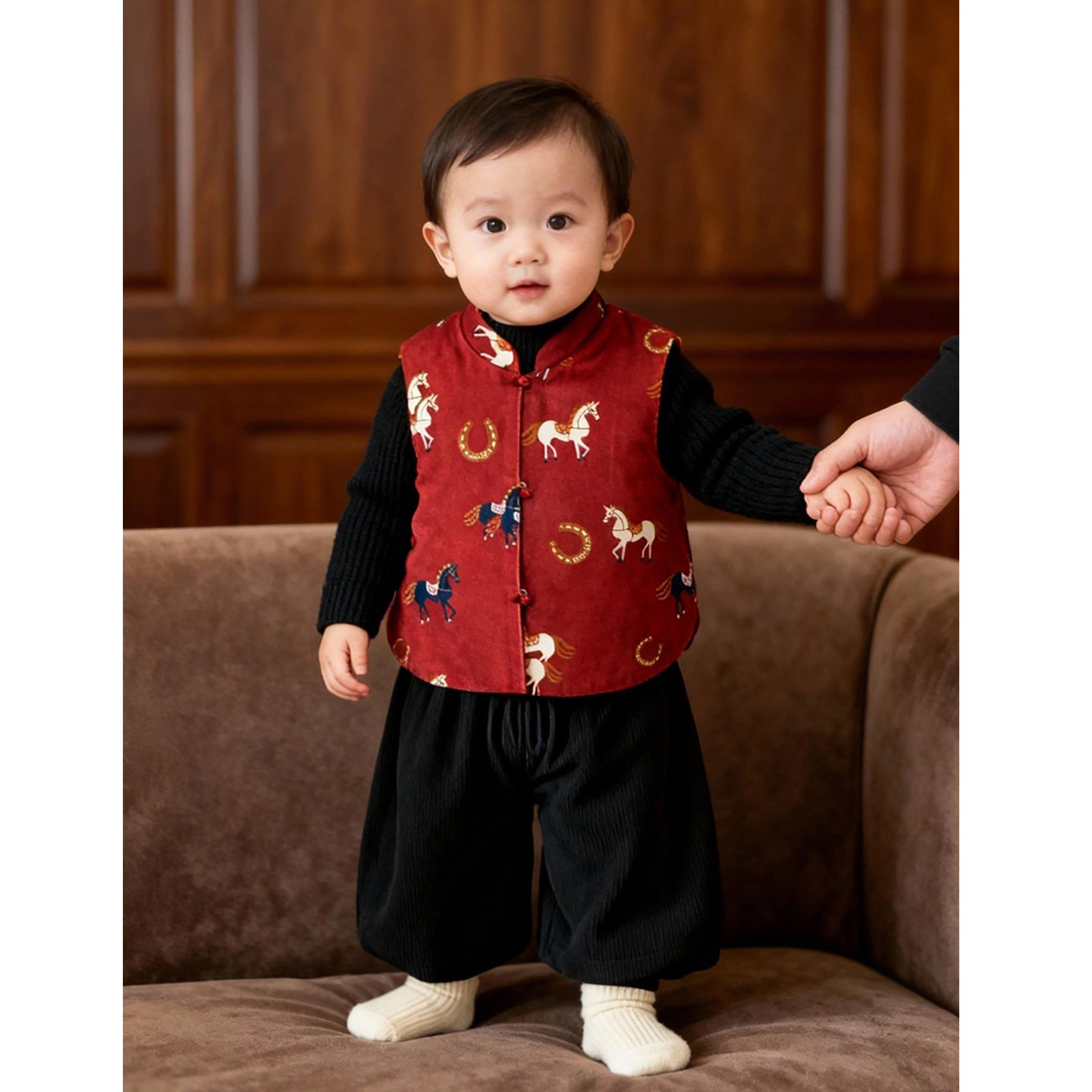 儿童中国风马甲男女宝宝红色新年衣服唐装秋冬新款周岁拜年服套装