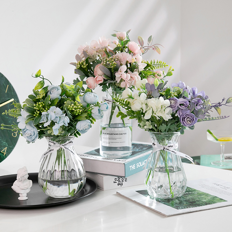 花艺套装简约玻璃花瓶透明水养植物鲜花玫瑰百合花瓶干花插花摆件