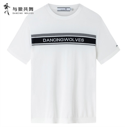 【商场款】与狼共舞针织圆领短袖T恤男2025夏季款提花修身透气短t