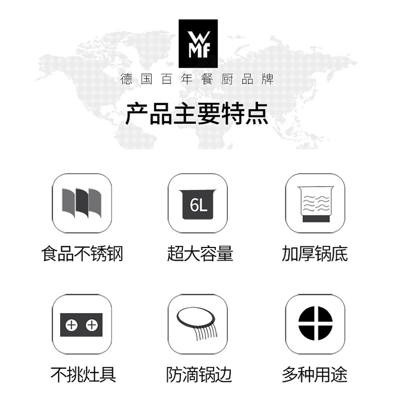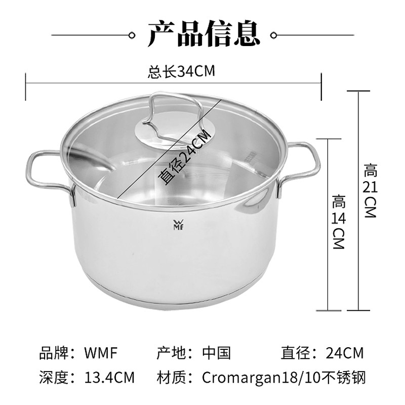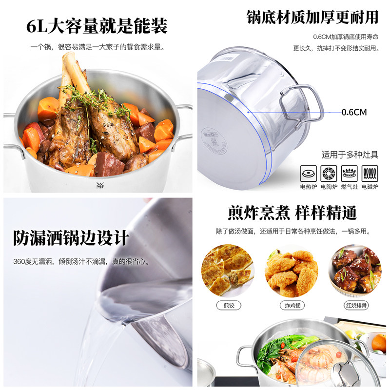 【自营】德国WMF福腾宝不锈钢家用汤锅炖锅燃气电磁炉通用加厚锅