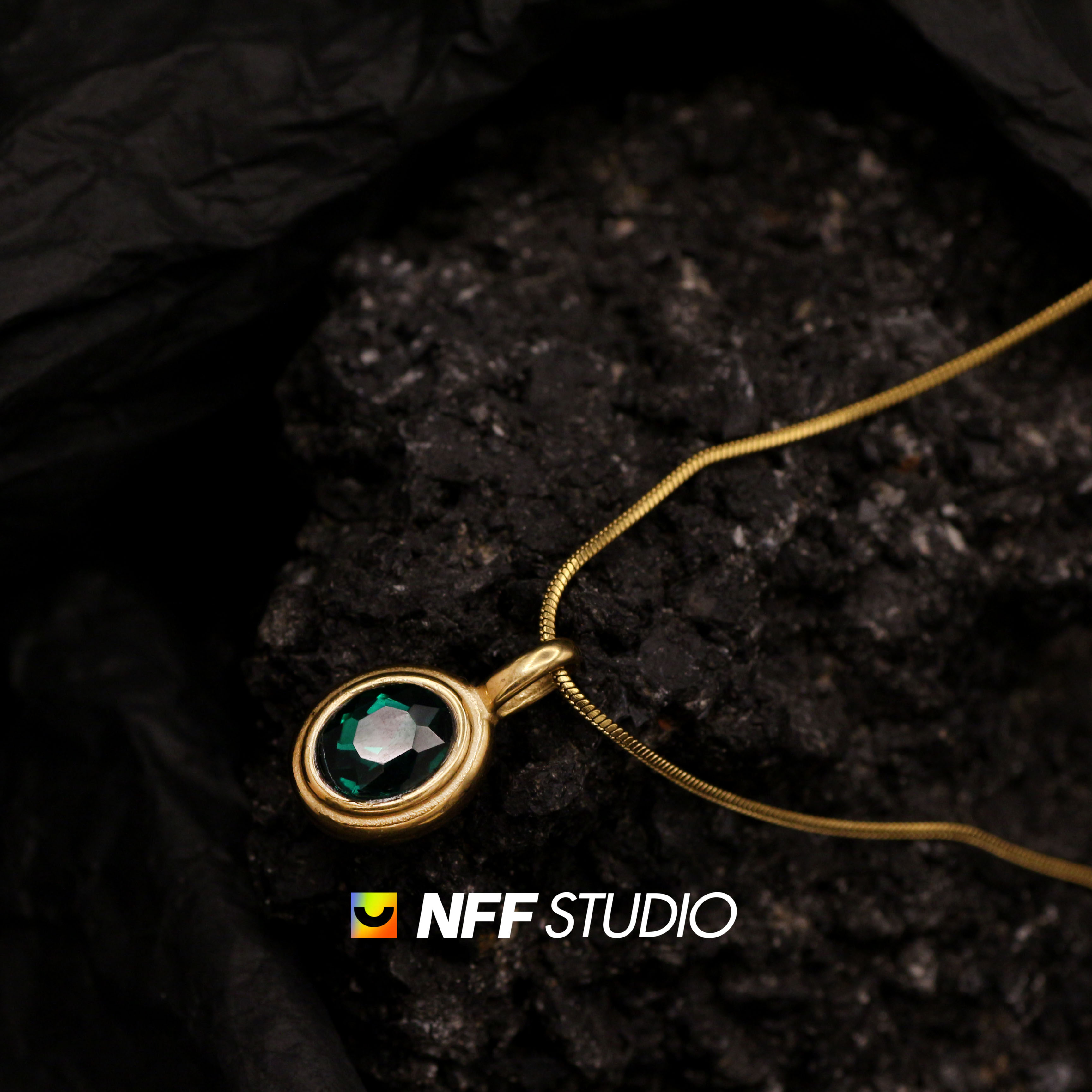 NFF不掉色复古绿宝石吊坠锁骨链气质简约细链百搭小众设计感项链