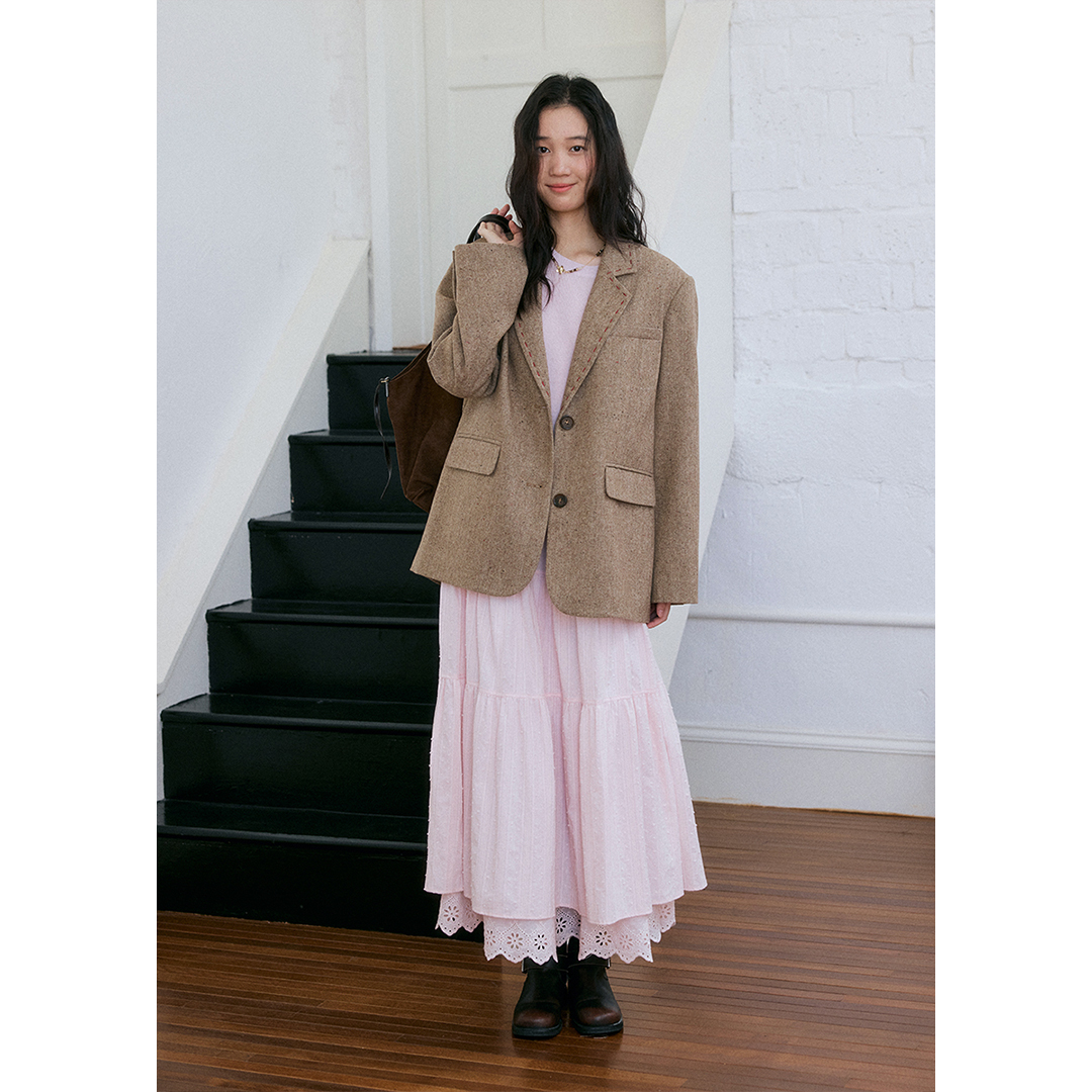 手工缝线羊毛卡其色毛呢西装外套