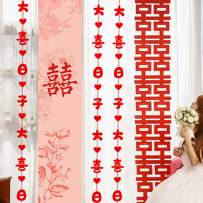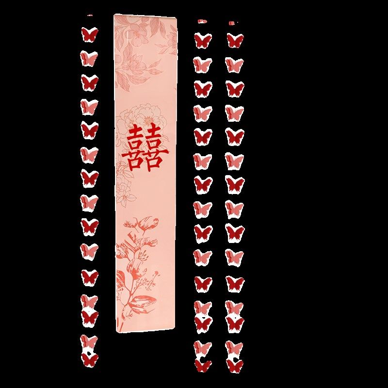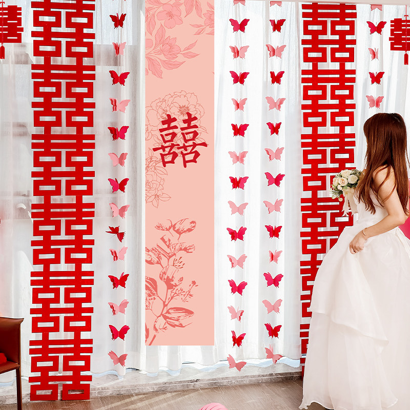 婚房布置长条喜字窗帘蝴蝶挂件装饰结婚女方卧室客厅晨袍拍照背景
