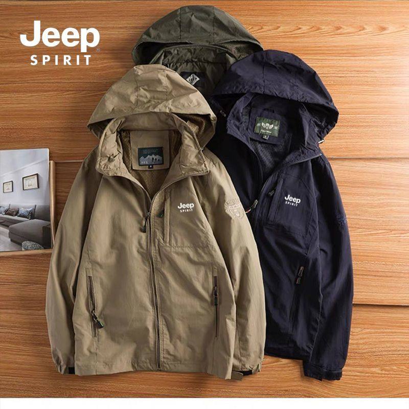 JEEP吉普薄款夹克男春秋户外休闲运动冲锋衣宽松大码风衣春季外套