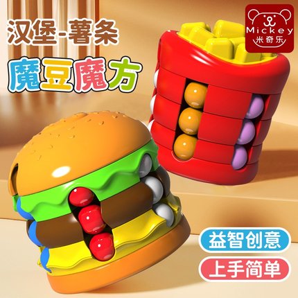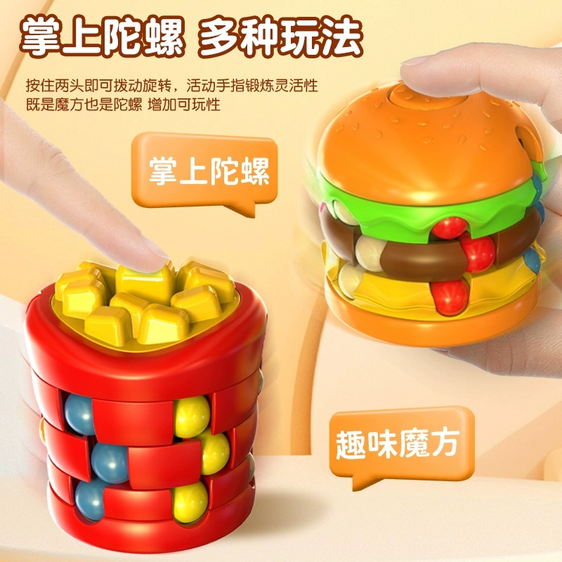 汉堡薯条魔豆魔方旋转陀螺滚珠六一儿童节礼物益智学生解压小玩具