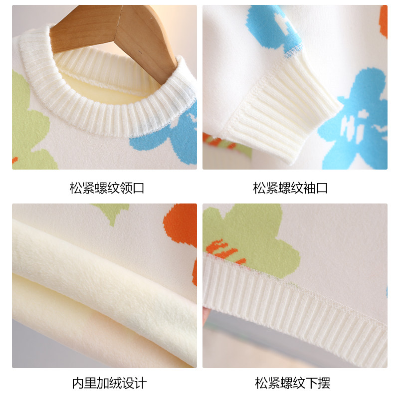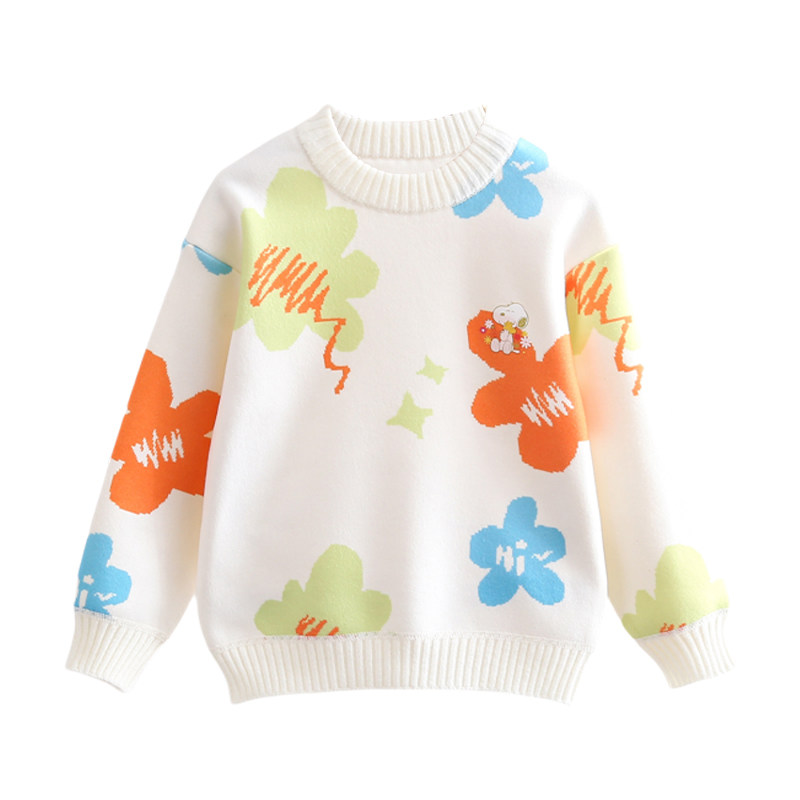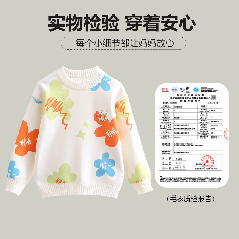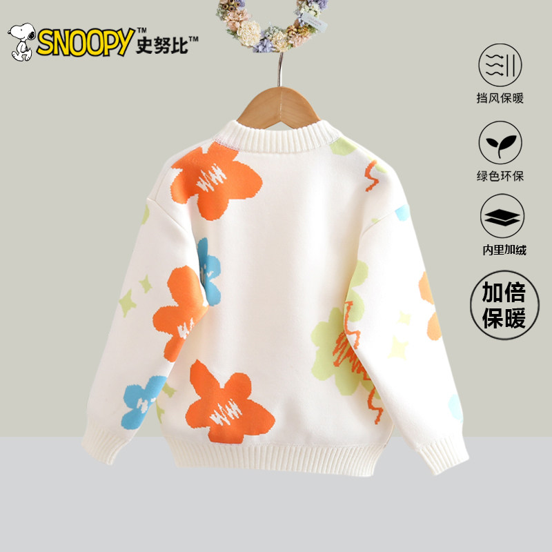 史努比女童毛衣2025冬季新款中小童套头衫上衣儿童加绒加厚针织衫