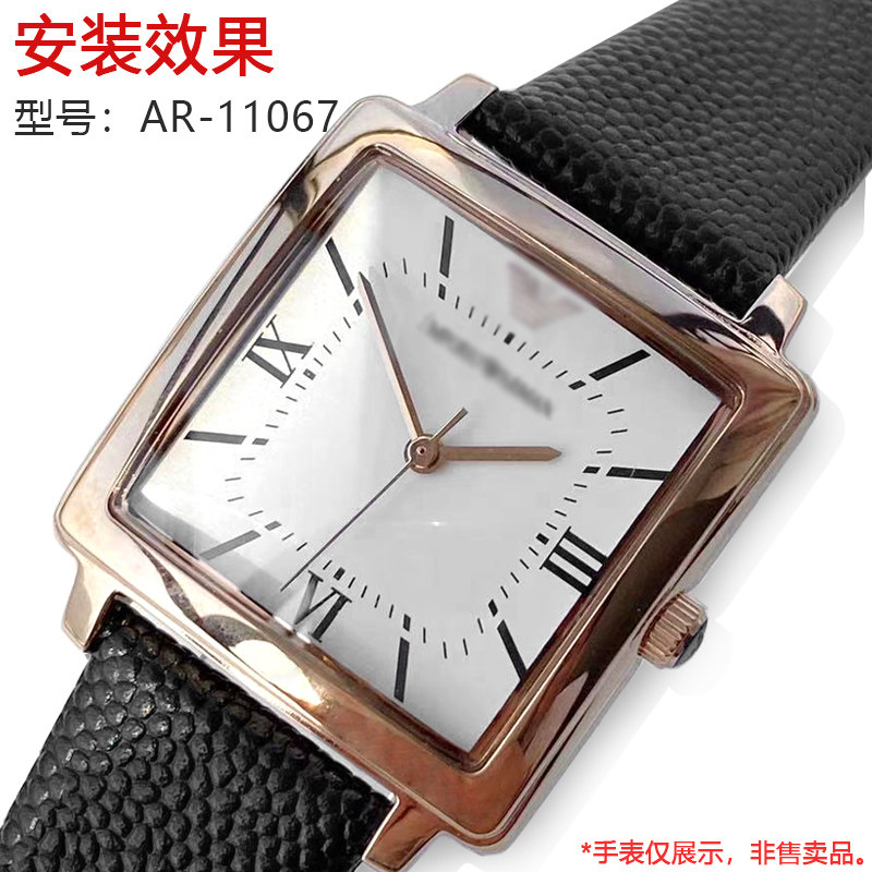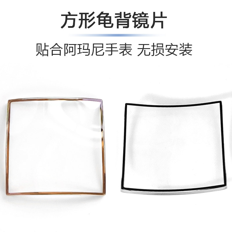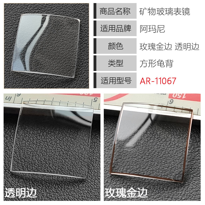 适用阿玛尼方形表镜片AR11067矿物玻璃龟背玫瑰金边透明蒙子配件