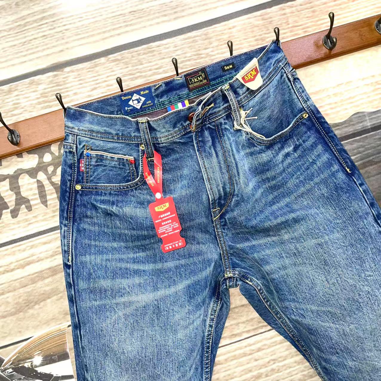 春夏赤耳丹宁无弹纯棉高端牛仔长裤九分裤男宽松直筒复古重工洗水