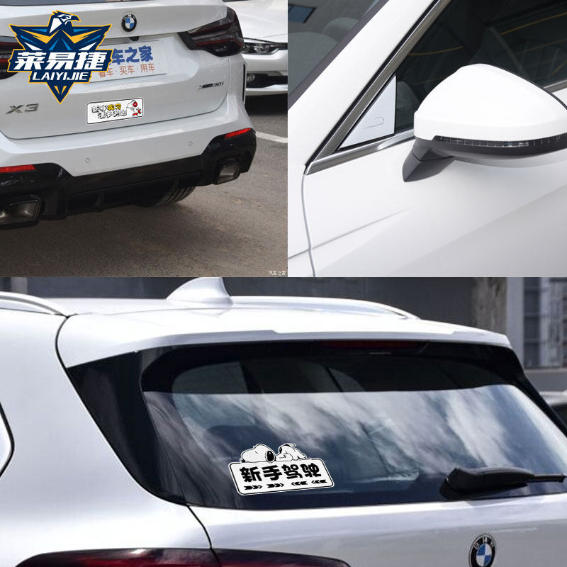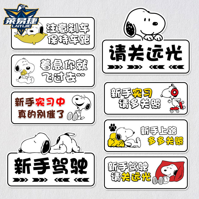 史努比新手驾驶请关远光警示贴反光汽车贴纸车身贴车尾部后玻璃贴