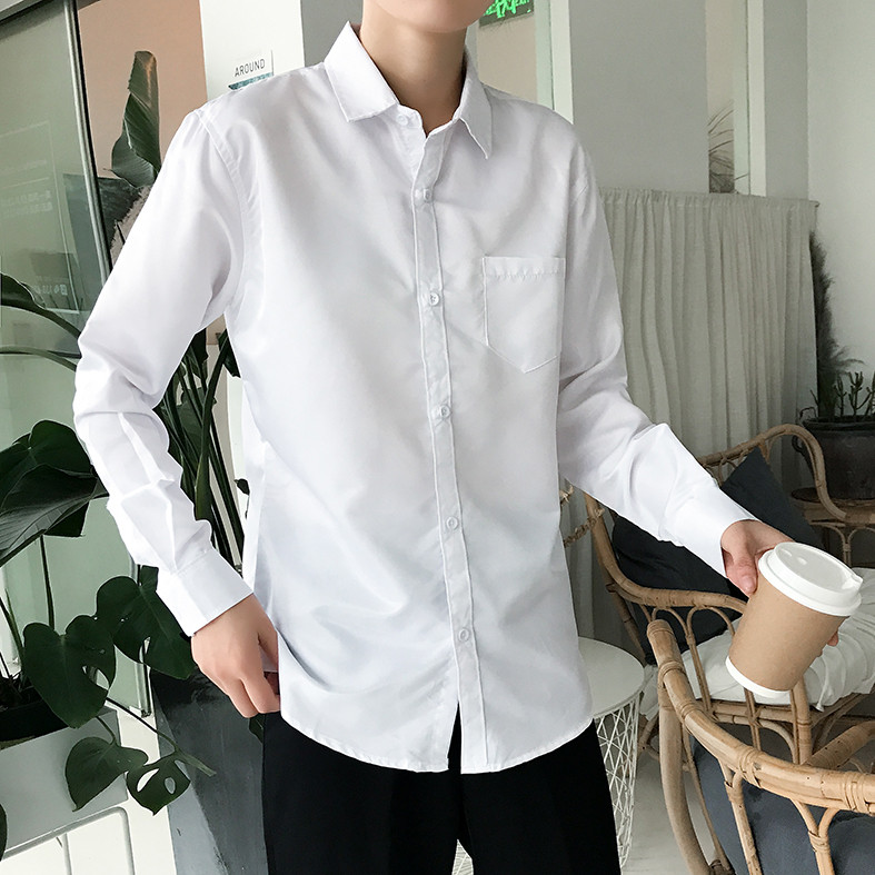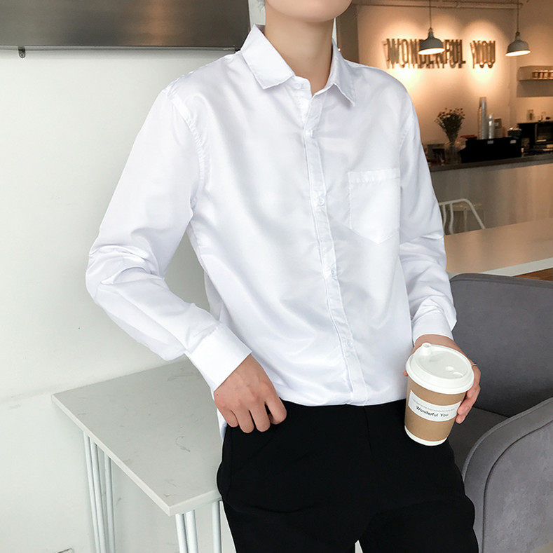 秋季男士长袖衬衫修身白色衬衣韩版商务休闲职业正装工装上班寸衫
