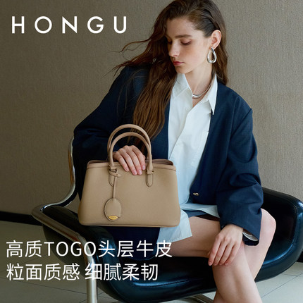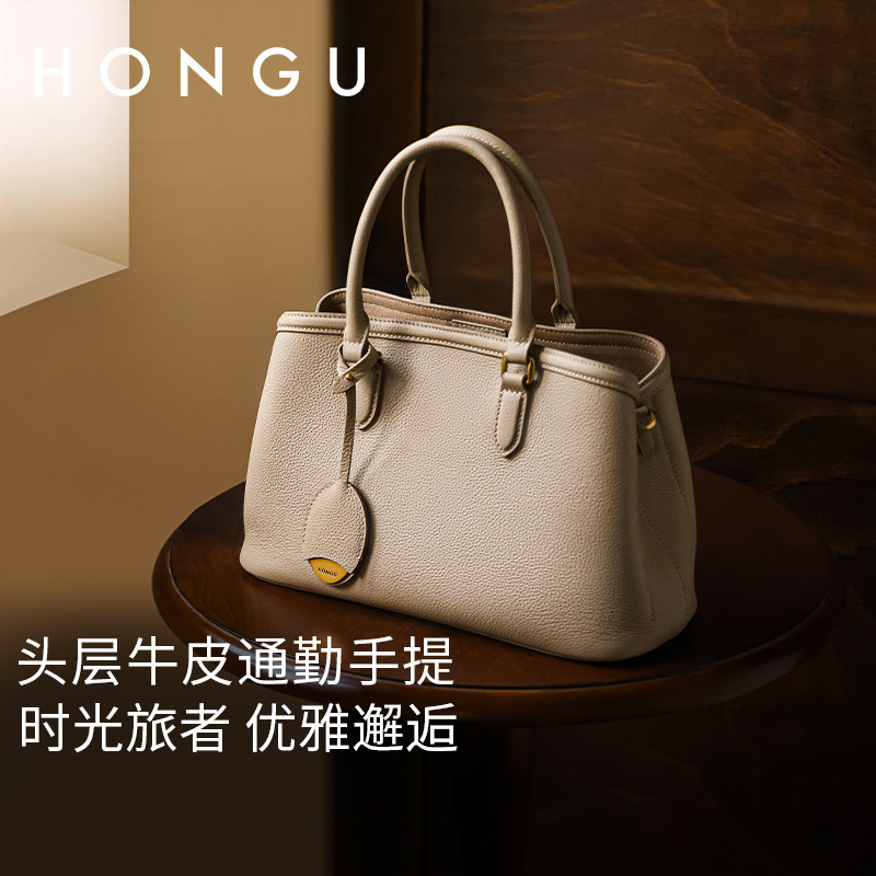 红谷高级感头层牛皮手提单肩包大容量托特包简约百搭手拎包6010