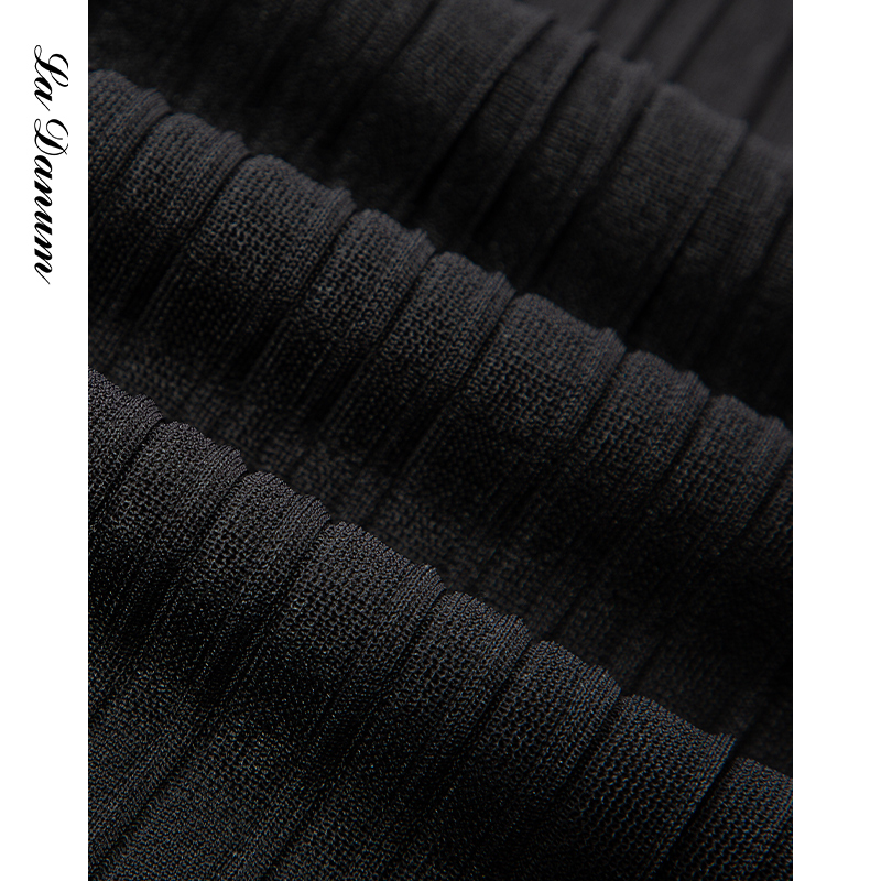 阿丹娜黑色钉珠长袖针织连衣裙