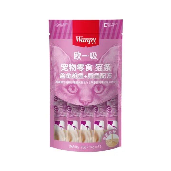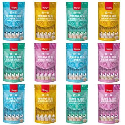 Wanpy顽皮欧一吸猫条鸡肉金枪鱼鳕鱼虾仁扇贝三文鱼5种口味猫零食
