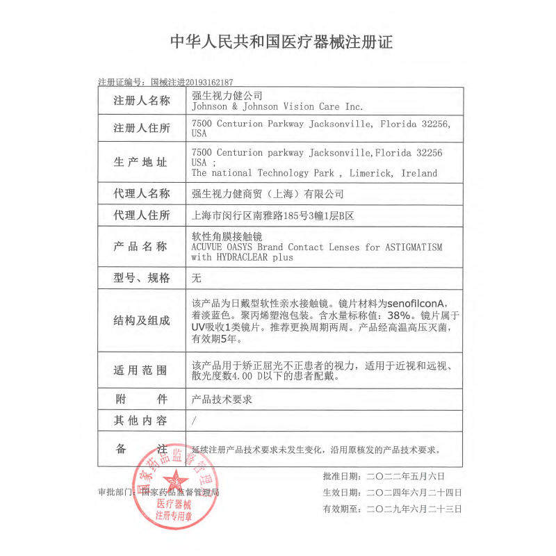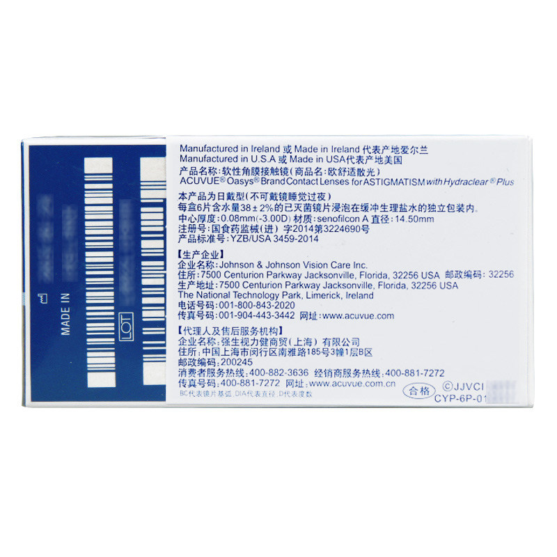 【现货】强生安视优欧舒适双周抛隐形眼镜硅水凝胶舒日散光定制QX