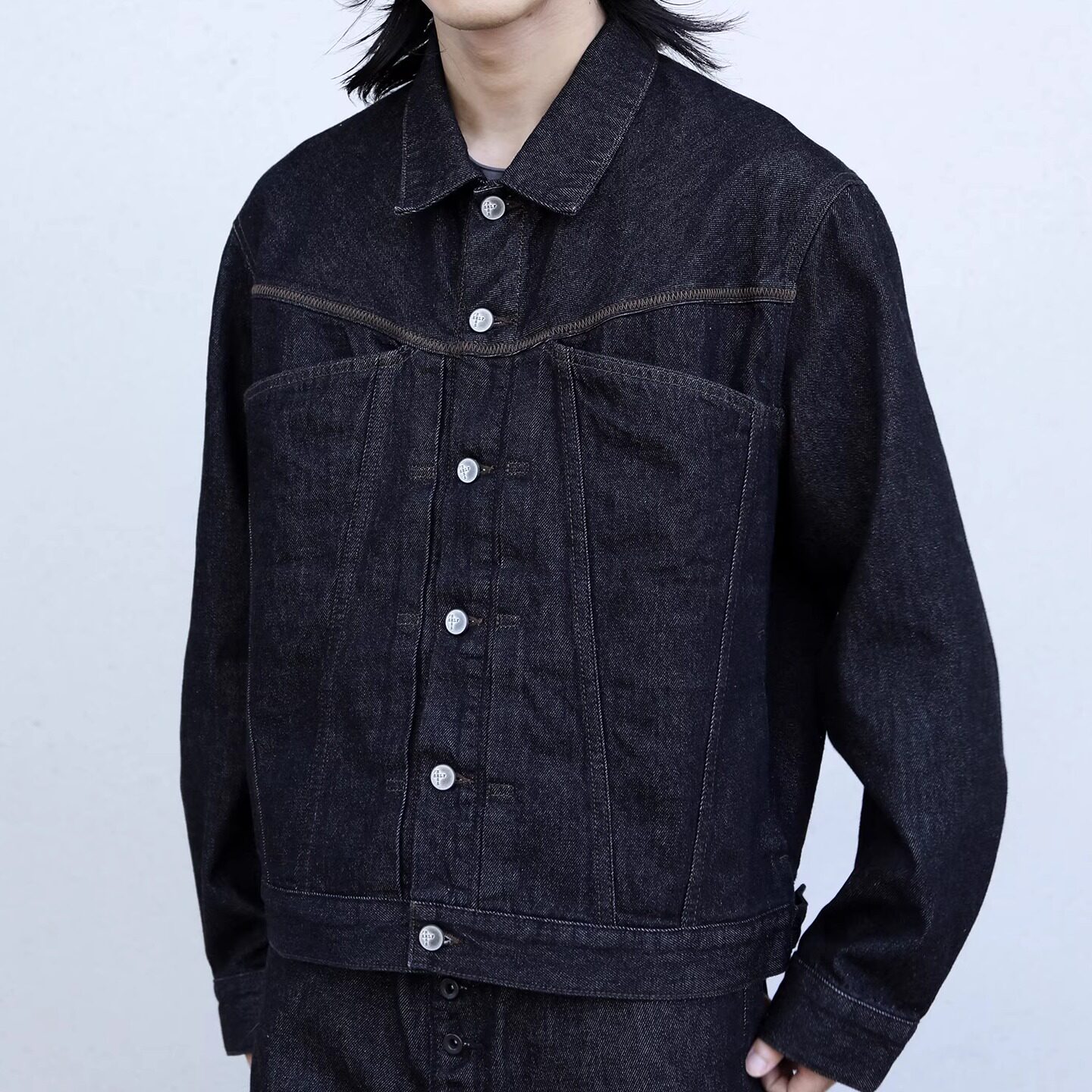 SELFNESS男士原色黑原牛牛仔夹克