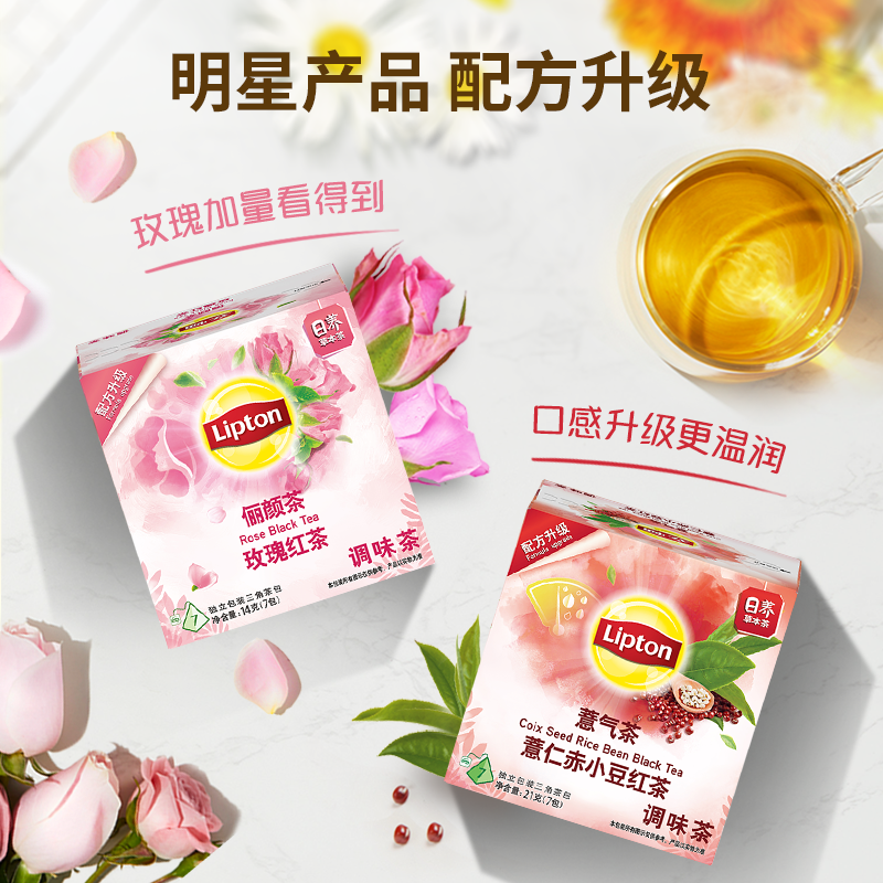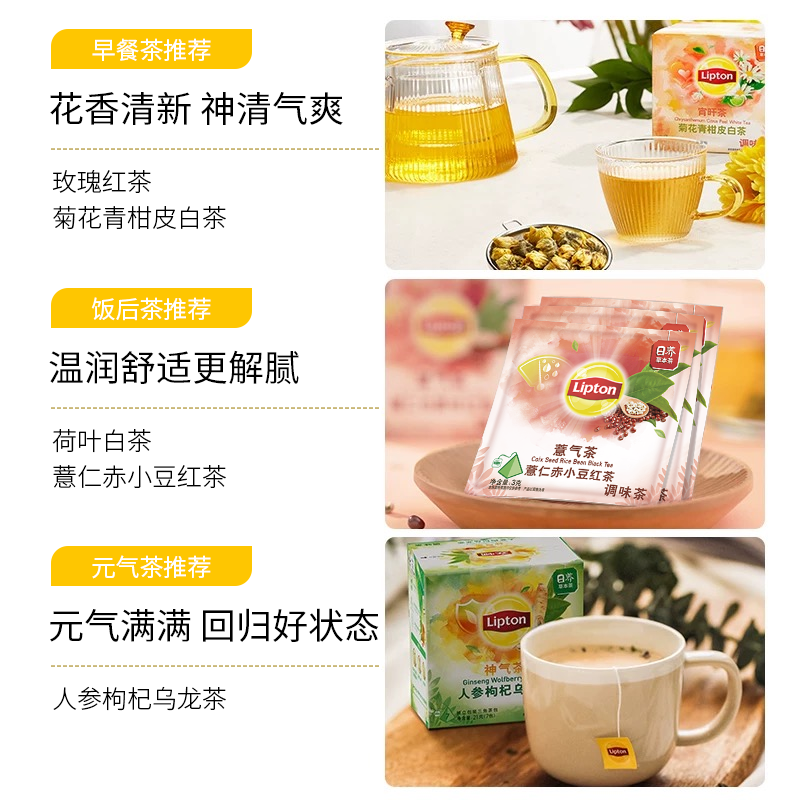 立顿伯爵味红茶玫瑰菊花柠檬片白茶人参枸杞花草茶包7包盒装