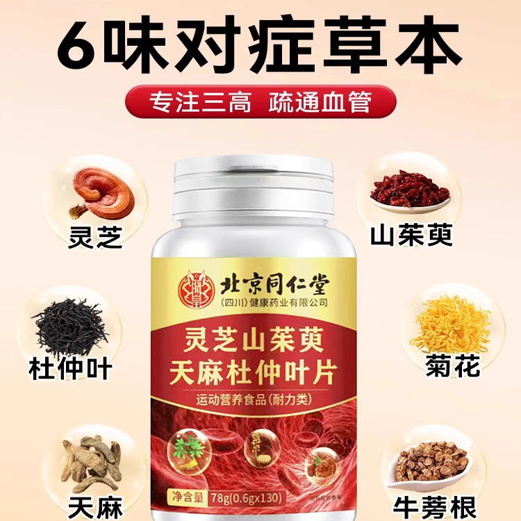 北京同仁堂灵芝山茱萸天麻杜仲叶片植物萃取中老年搭血管营养正品