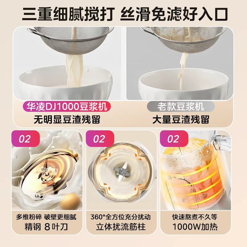 美的华凌豆浆机家用全自动多功能大容量榨汁料理机免滤轻音破壁机