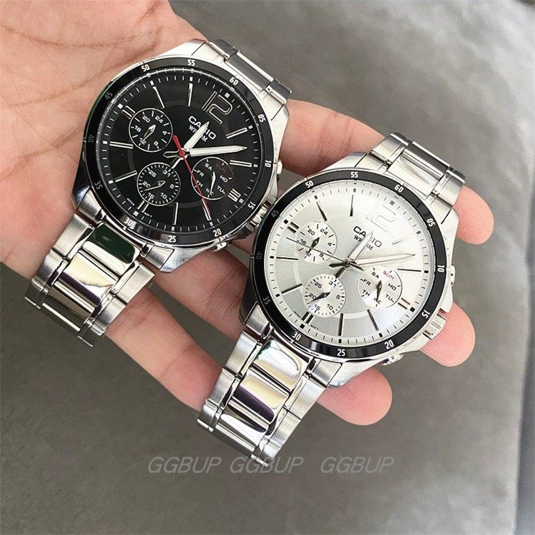 卡西欧商务休闲优雅防水三眼石英指针手表男MTP-1374D/MTP-1375