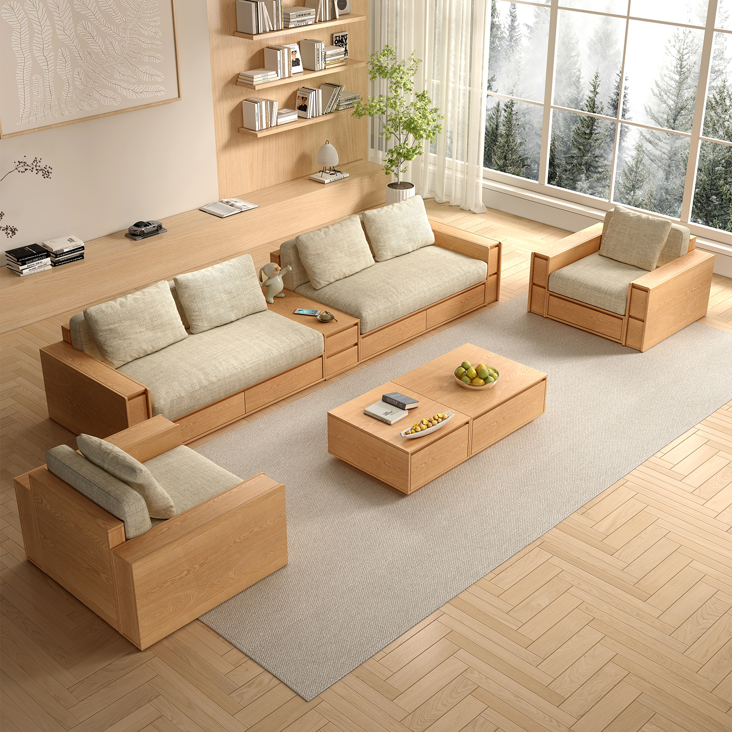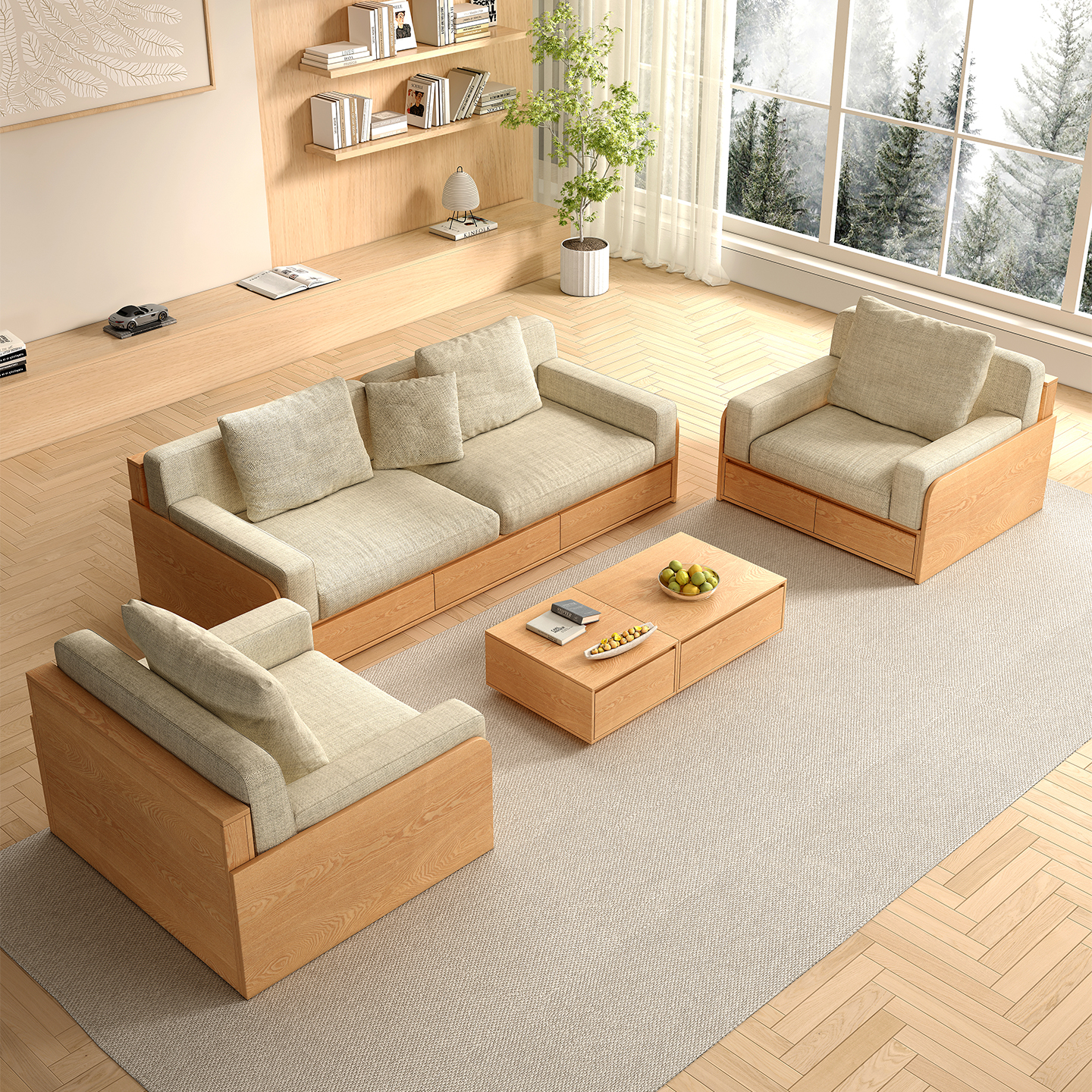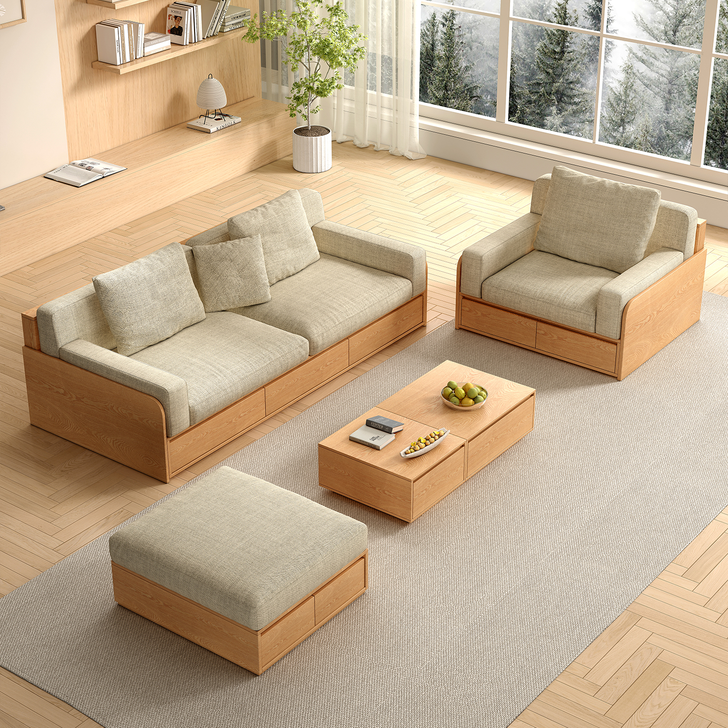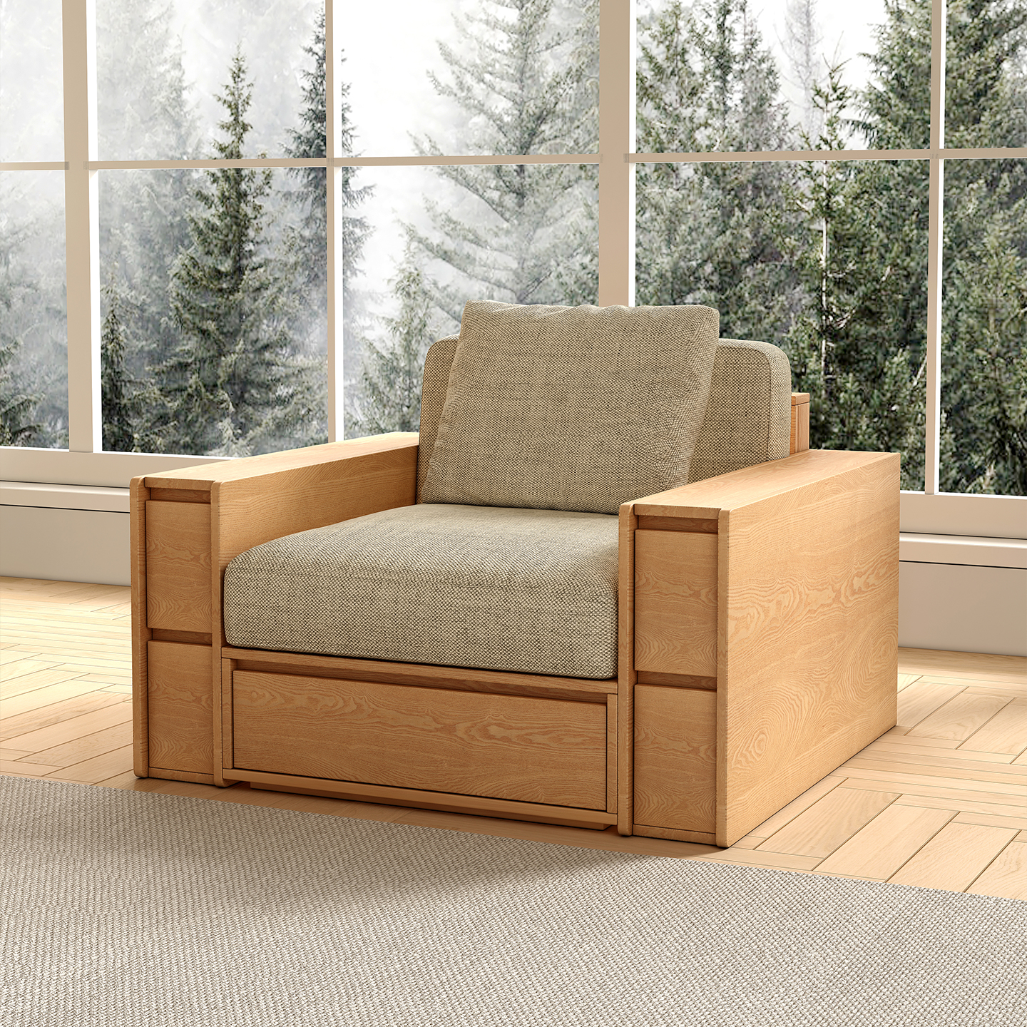 全实木储物单人沙发小户型布艺储物功能家用客厅原木风单人位沙发