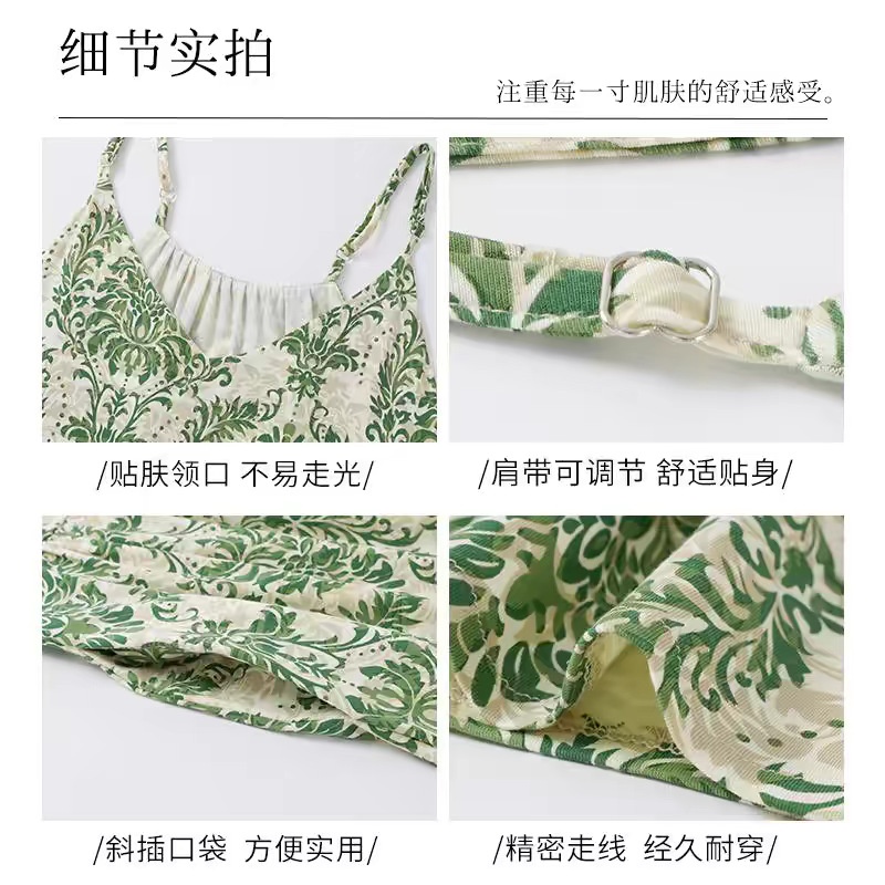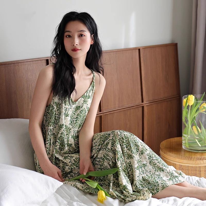 晚眠带胸垫吊带睡裙女夏季薄性感2024年新款睡衣薄荷曼波夏天