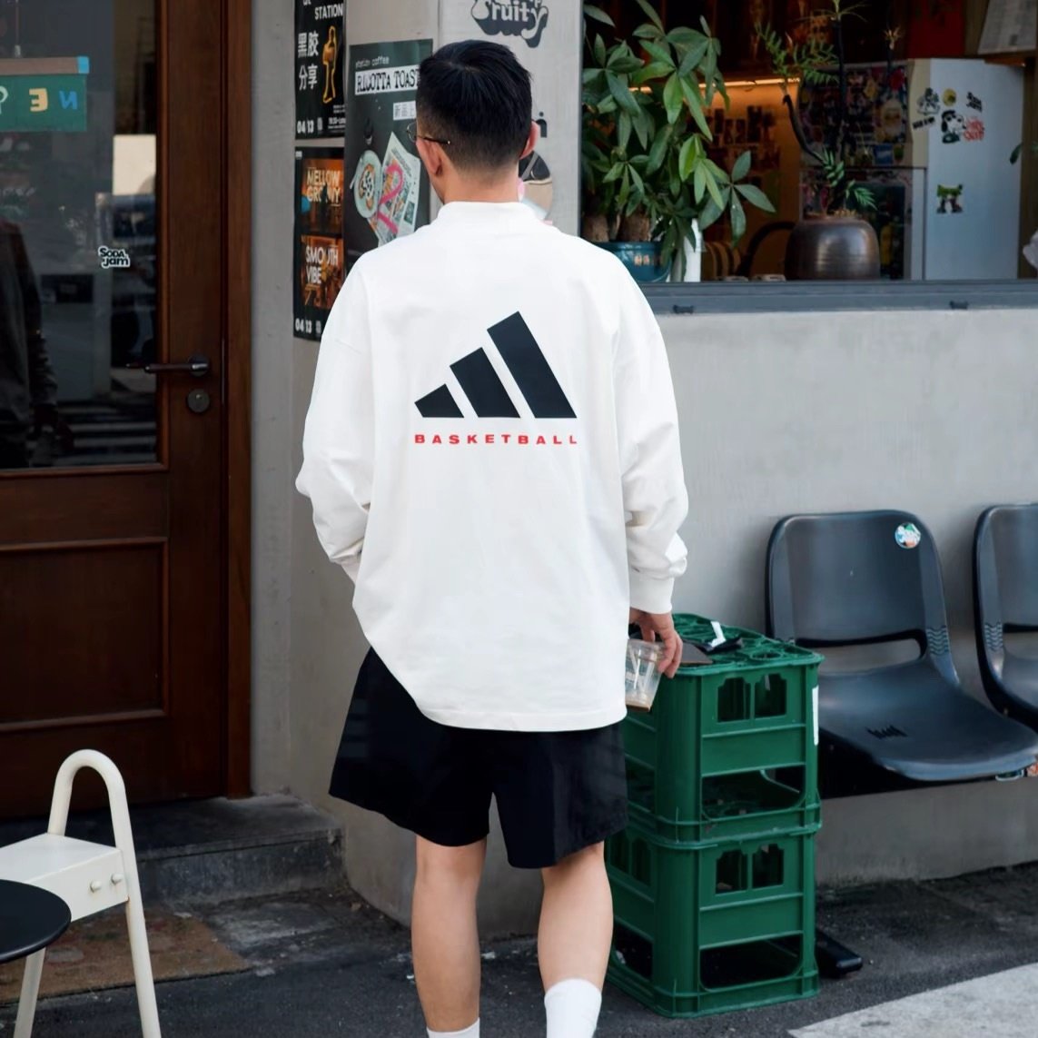 阿迪达斯男女同款长袖T恤2025款半高领印花休闲篮球套头衫JE3766