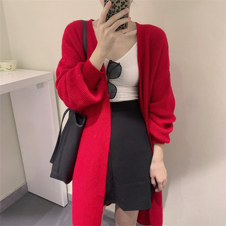 2025秋季外搭针织开衫女中长款慵懒风外套气质毛衣无扣宽松大衣