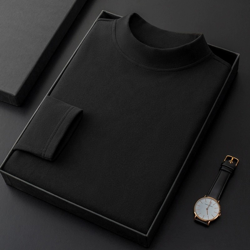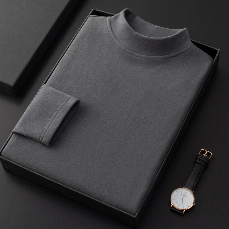 德绒打底衫男保暖内搭双面磨毛长袖T恤男秋冬加厚内衣半高领卫衣