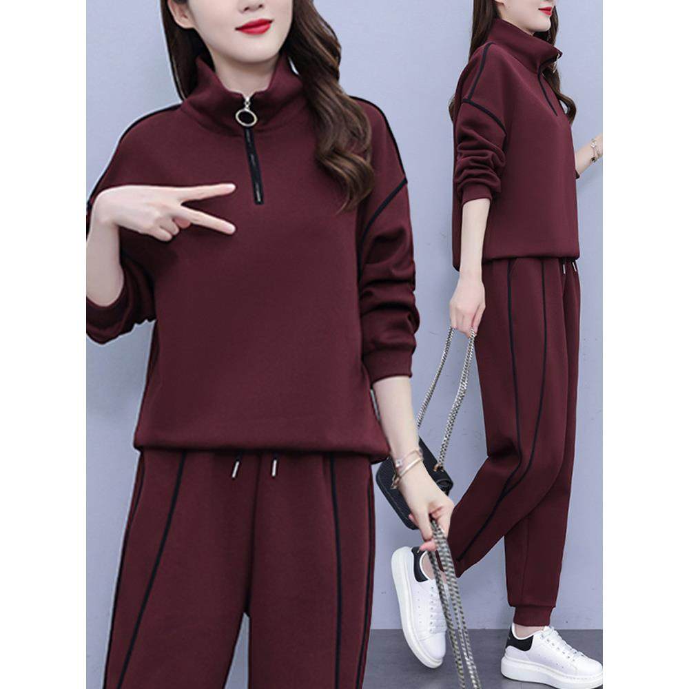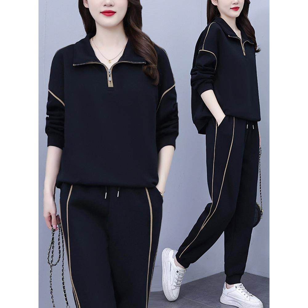 春季秋季大码休闲运动服套装女两件套2026新款妈妈显瘦卫衣0119ud