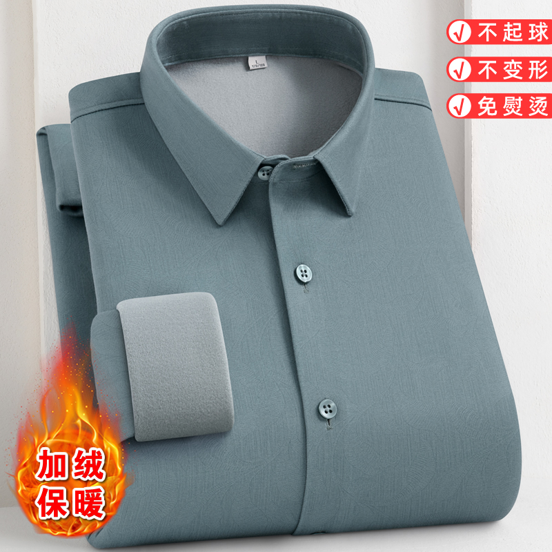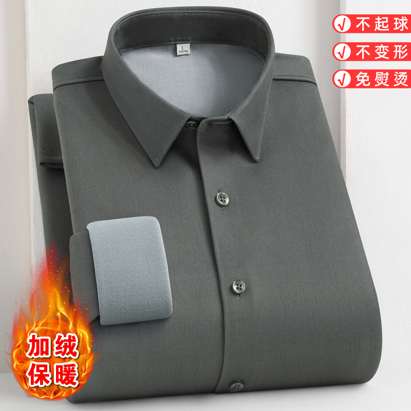 【羊毛蚕丝】保暖衬衫男加绒加厚冬季中年商务休闲格子一体绒衬衣