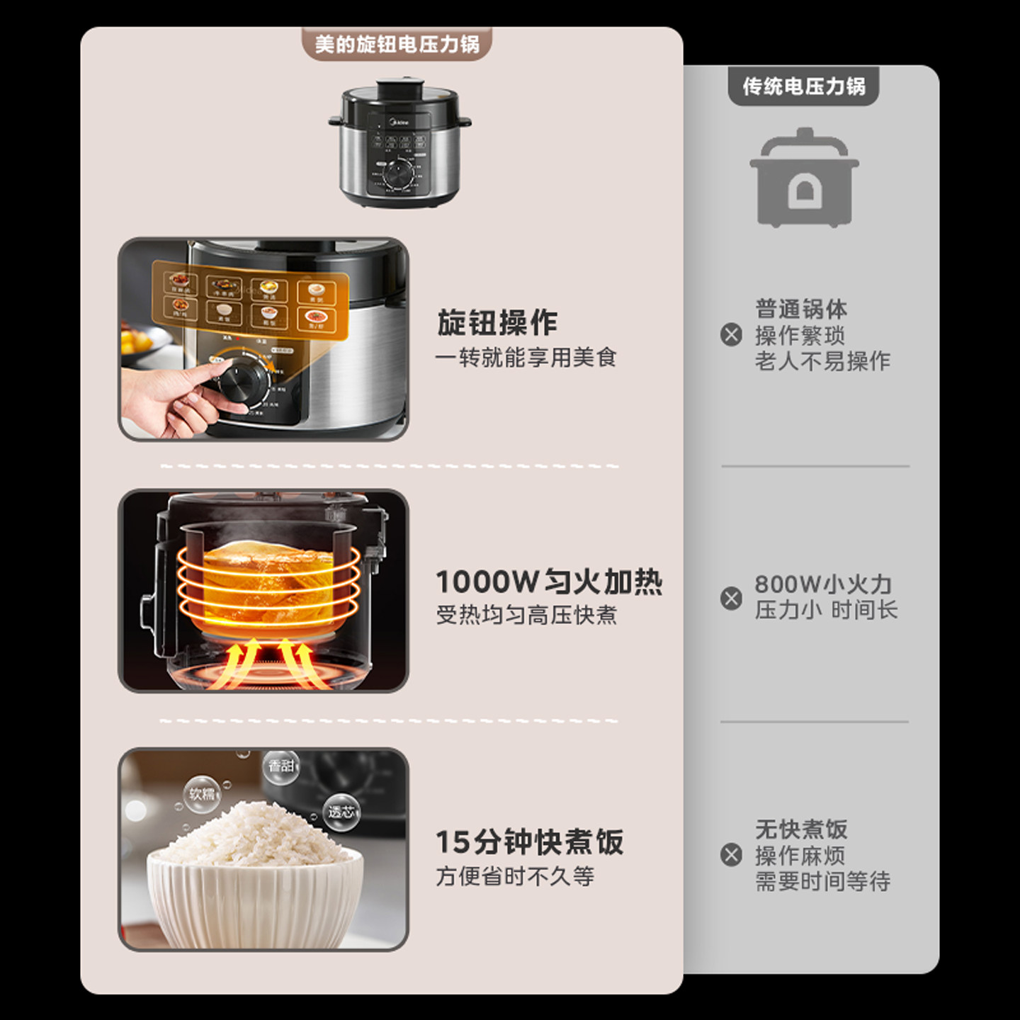 美的电压力锅5升机械款旋钮多功能电饭煲老款式电饭锅电高压饭煲