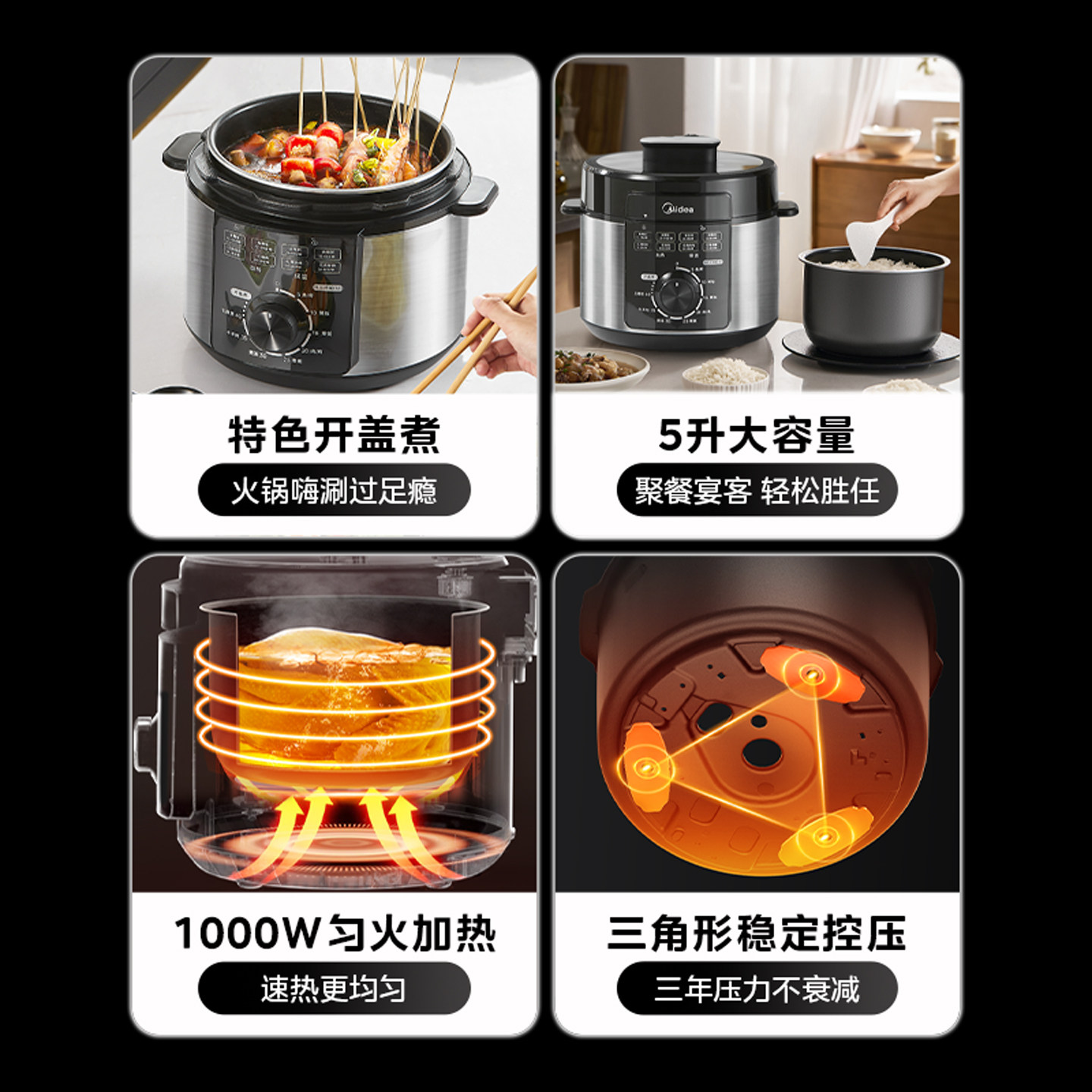 美的5/6L机械旋钮电压力锅家用