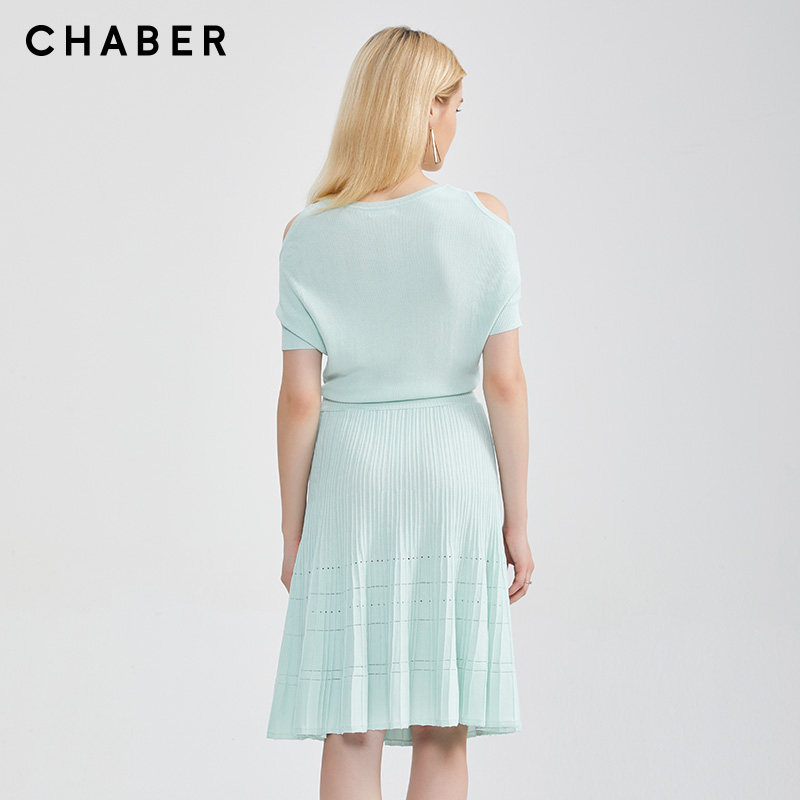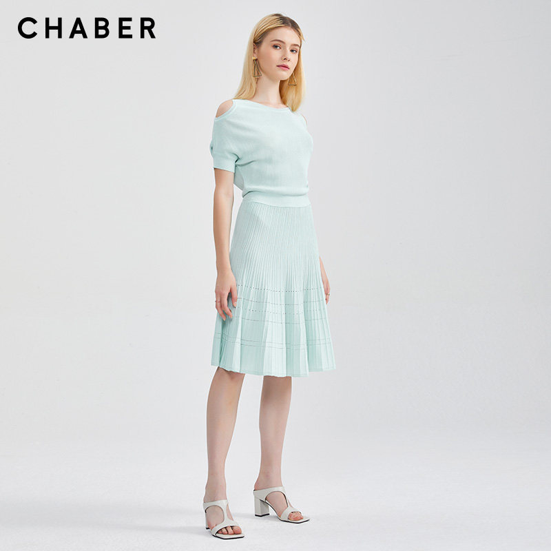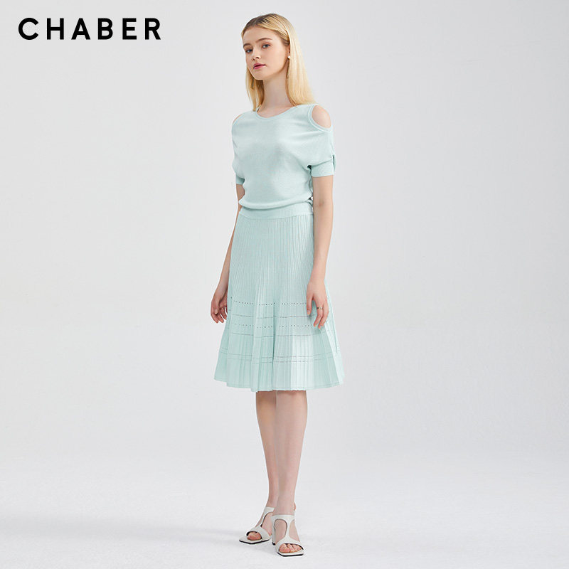 chaber裙子现货性感气质显瘦新款巧帛夏季新品淑女通勤纯色高收腰