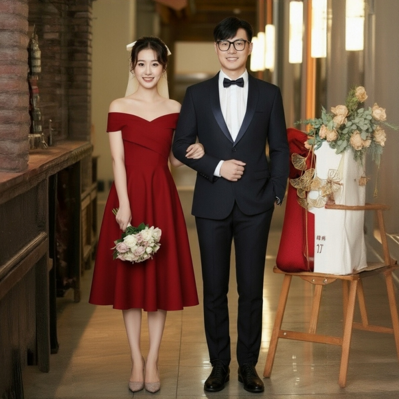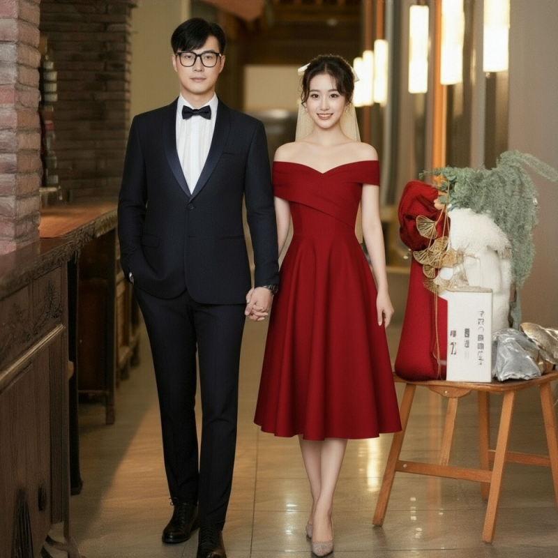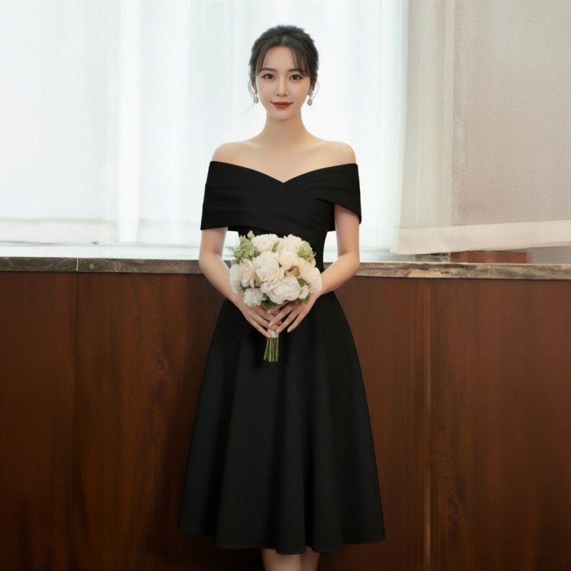 法式设计感轻婚纱新娘结婚订婚一字肩晚礼服领证登记小白裙连衣裙