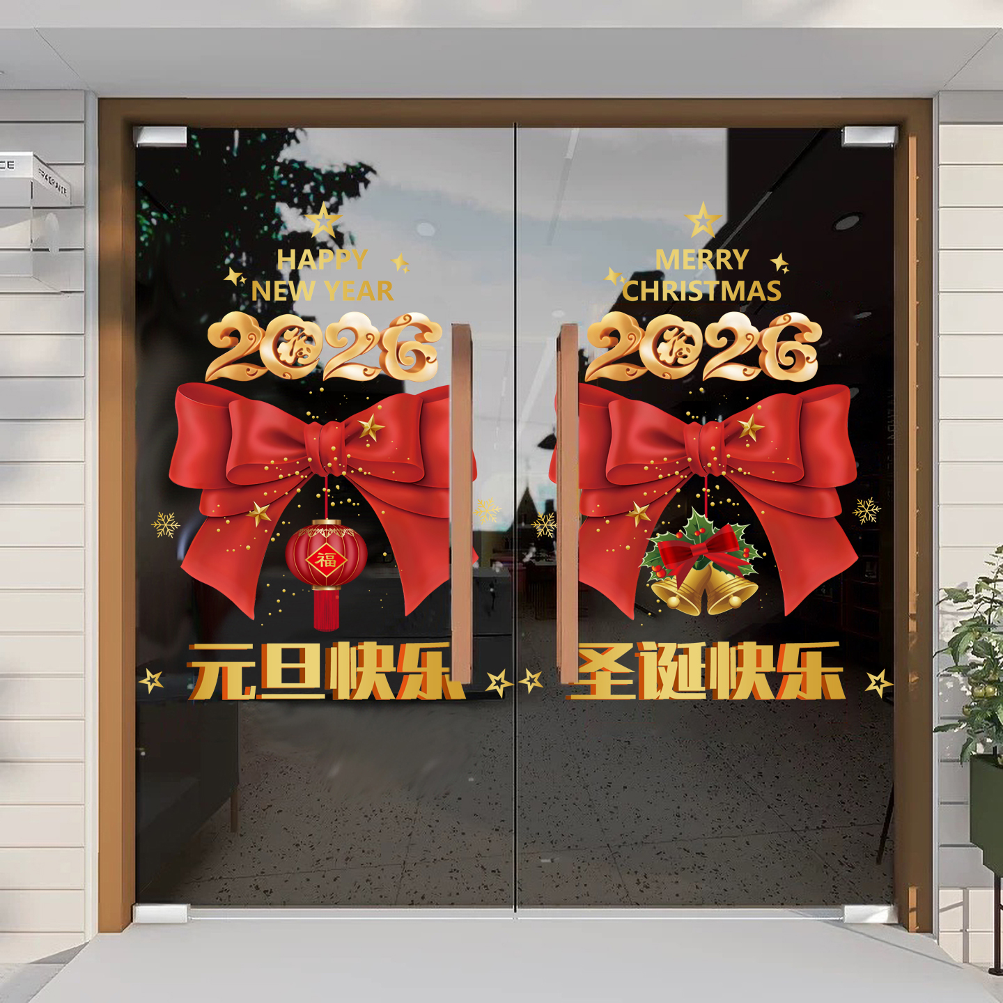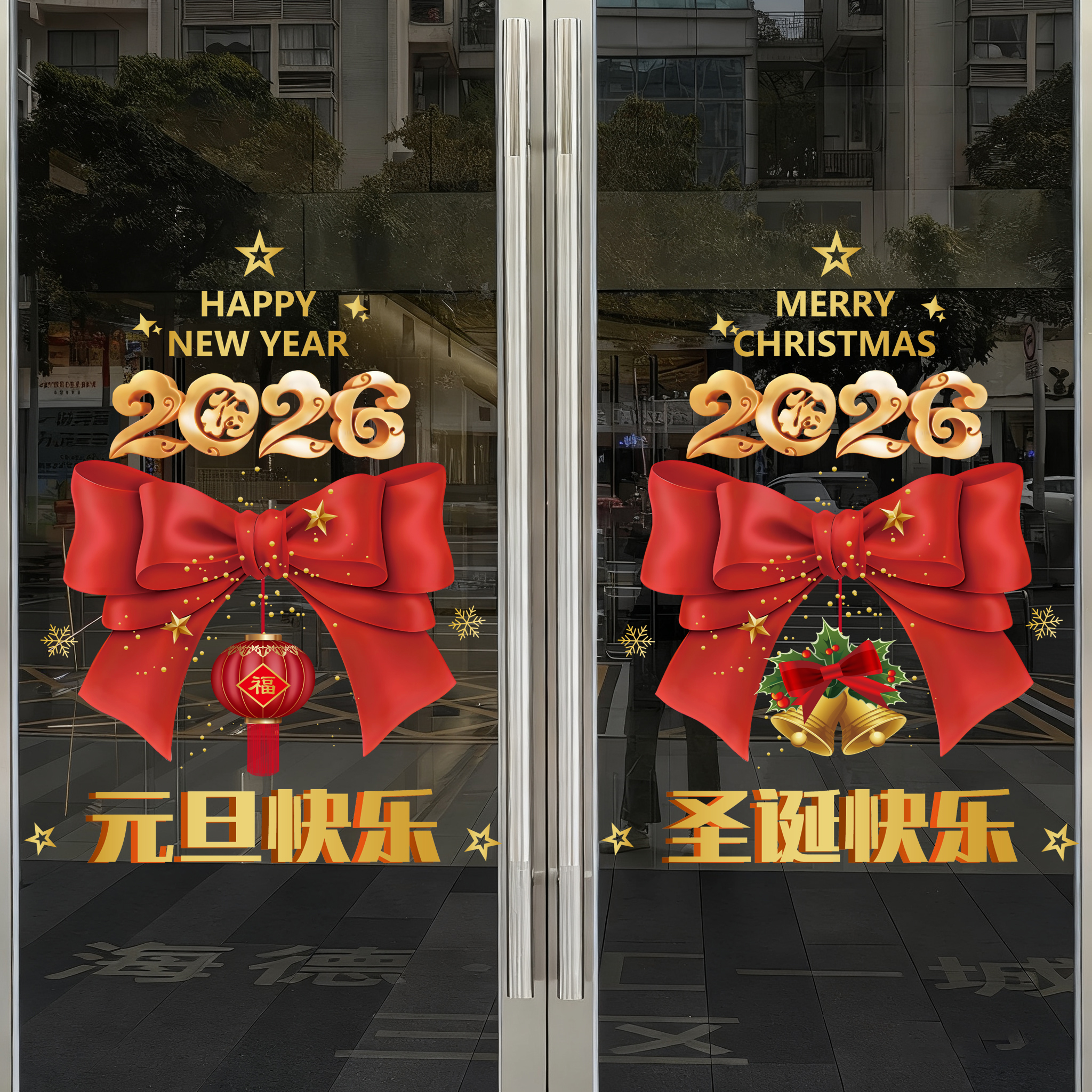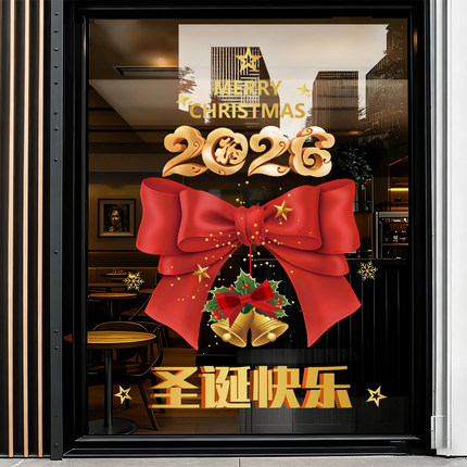 圣诞快乐蝴蝶结装饰氛围腰线布置橱窗场景蛋糕奶茶店门贴画新年贴